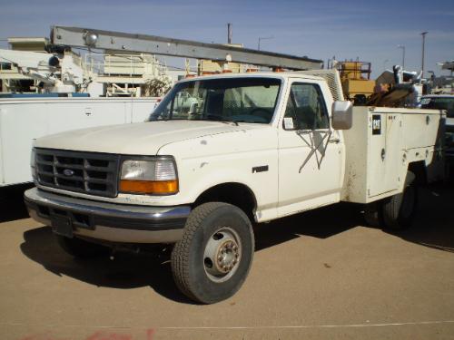 1997 FORD F450 SUPER DUTY MECHANICS TRUCK, s/n 3FELF47FOVMA21844: POWERSTROKE 7.3L DIESEL ENGINE, 5 SPEED TRANS., AC, TOOL BED, HYDRAULIC CRANE