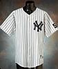 On the left front tail is the "Russell Athletic Diamond Collection" manufacturer's size "46" tag with wash instructions. Attached is an additional flag tag "100% Polyester". Attached below is the "RANDOLPH-98" year tag. On the left breast is the official "NY" logo. On the back is the player number "30". All lettering and numbering is done in navy blue tackle twill. On the left sleeve is a black number "5" done in black tackle twill, in memory of Yankees great Joe DiMaggio, who died in 1999. The jersey shows wear and appears to have no alterations of any kind. Accompanied by a Yankees-Steiner LOA.