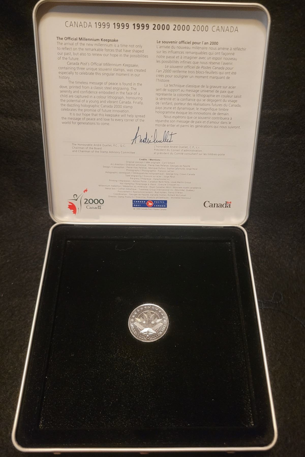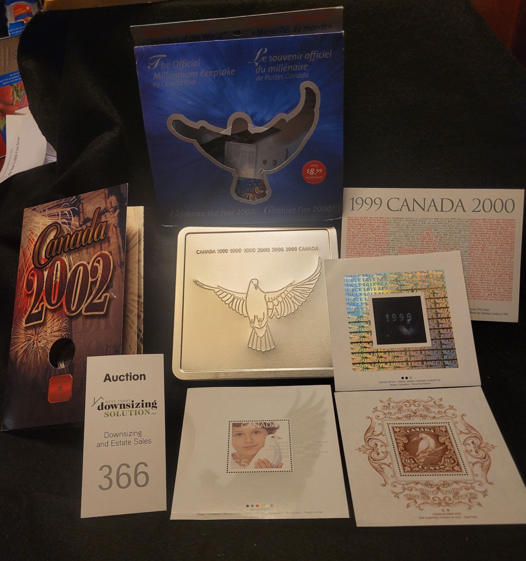Commemorative Millenium 1999-2000 coin & stamp set. Canada 2002 Quarter. Pickup at 9 am