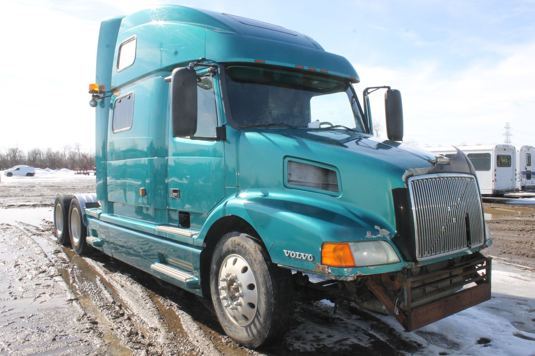 1999 Green Volvo Hiway Tractor, Intergrel Sleeper, 11R x 24.5 Tires, Series 60, 12.7 Litre Engine, SN.4V4ND3RJ5YN237626 Sold for Parts Only