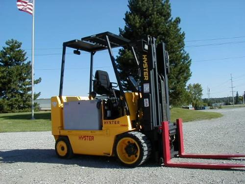 1999 HYSTER Electric Fork Lift, Model E-55-XM, 5,000lb Capacity, 36 Volt, 3 Stage, Hydraulic Fork Adjusters with Charger