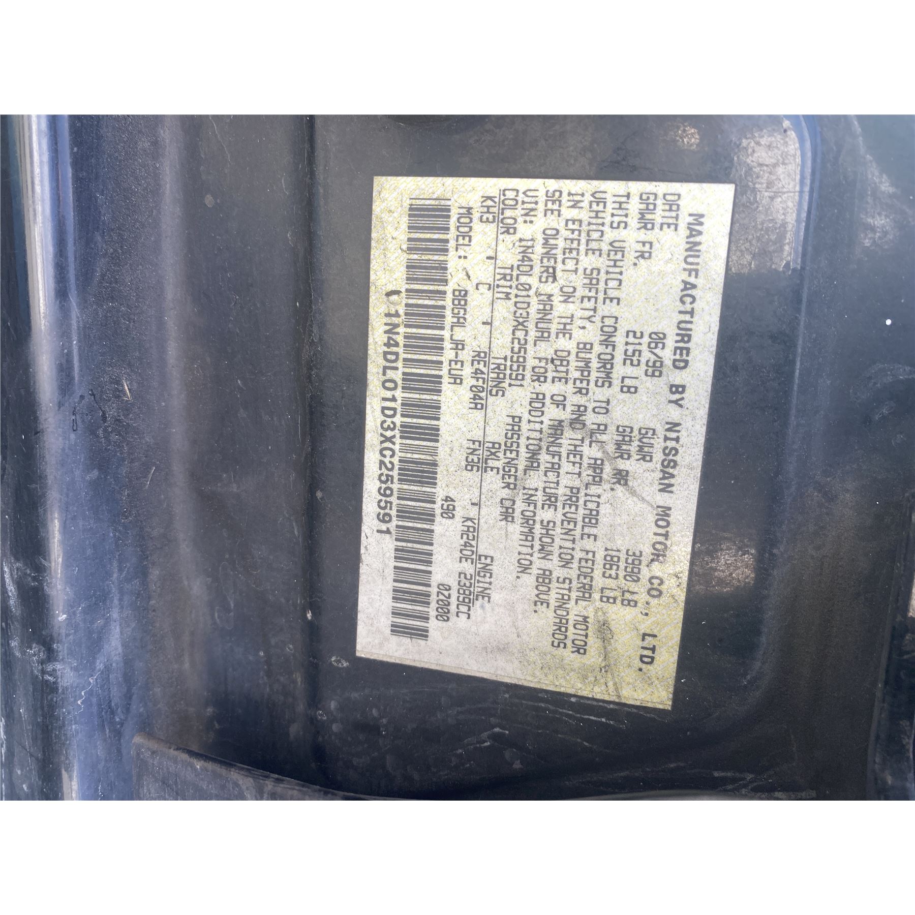 Title: T, Pno: NO, Vin: 1N4DL01D3XC259591, Mileage: 111983
