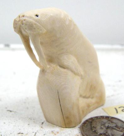 2-1/2" mammoth ivory carved walrus by Iglaak (114)