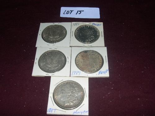 (2) 1885, (3) 1887, MORGAN SILVER DOLLARS