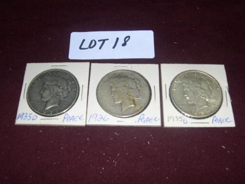 (2) 1935D, (1) 1926, PEACE DOLLARS