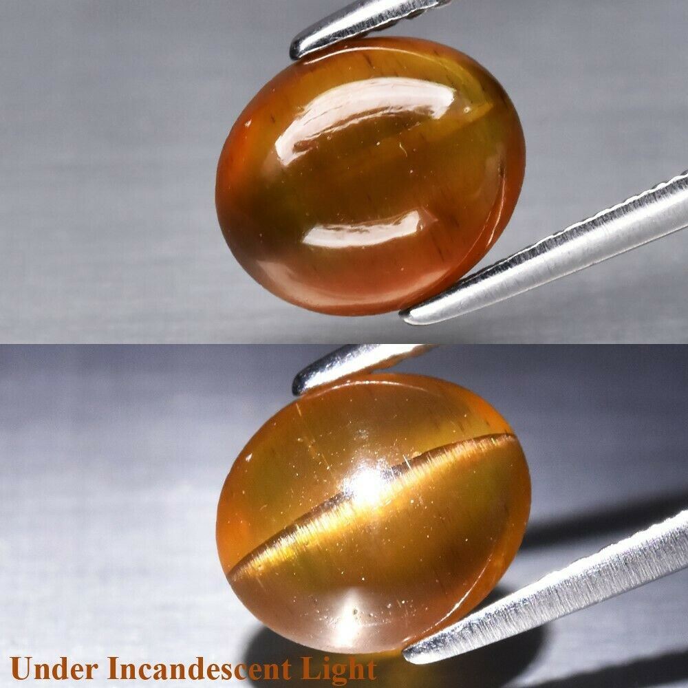 2.22 ct. 8.5 x 7.2 x 4.2 mm Oval Cabochon Semi-Translucent Perfect Laser Cat's Eye (please use gemlight or flashlight to see cat's eye) Africa Unheated Untreated