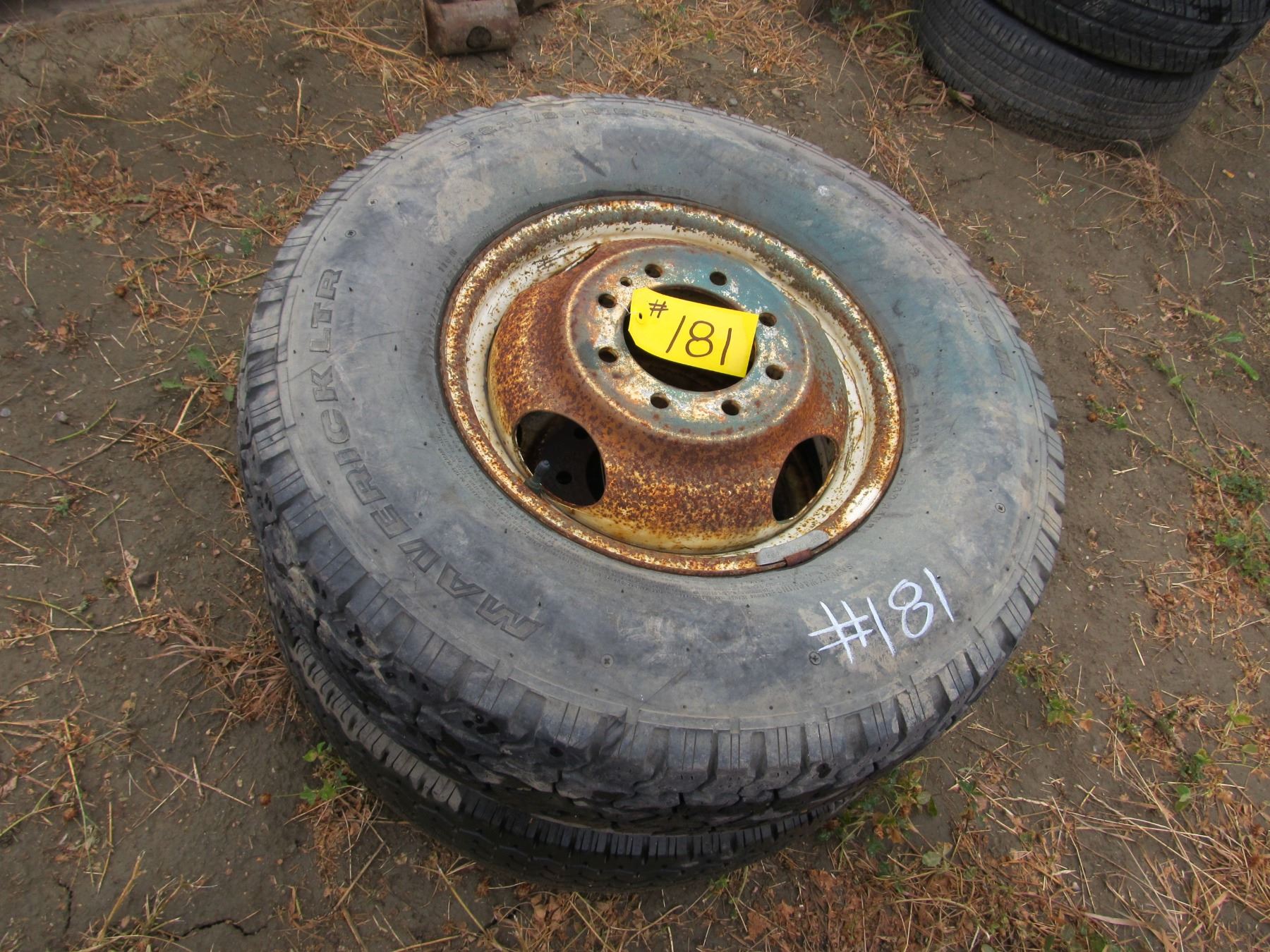 2- 235/85/16 GRIP TIRES ON 8 HOLE RIMS