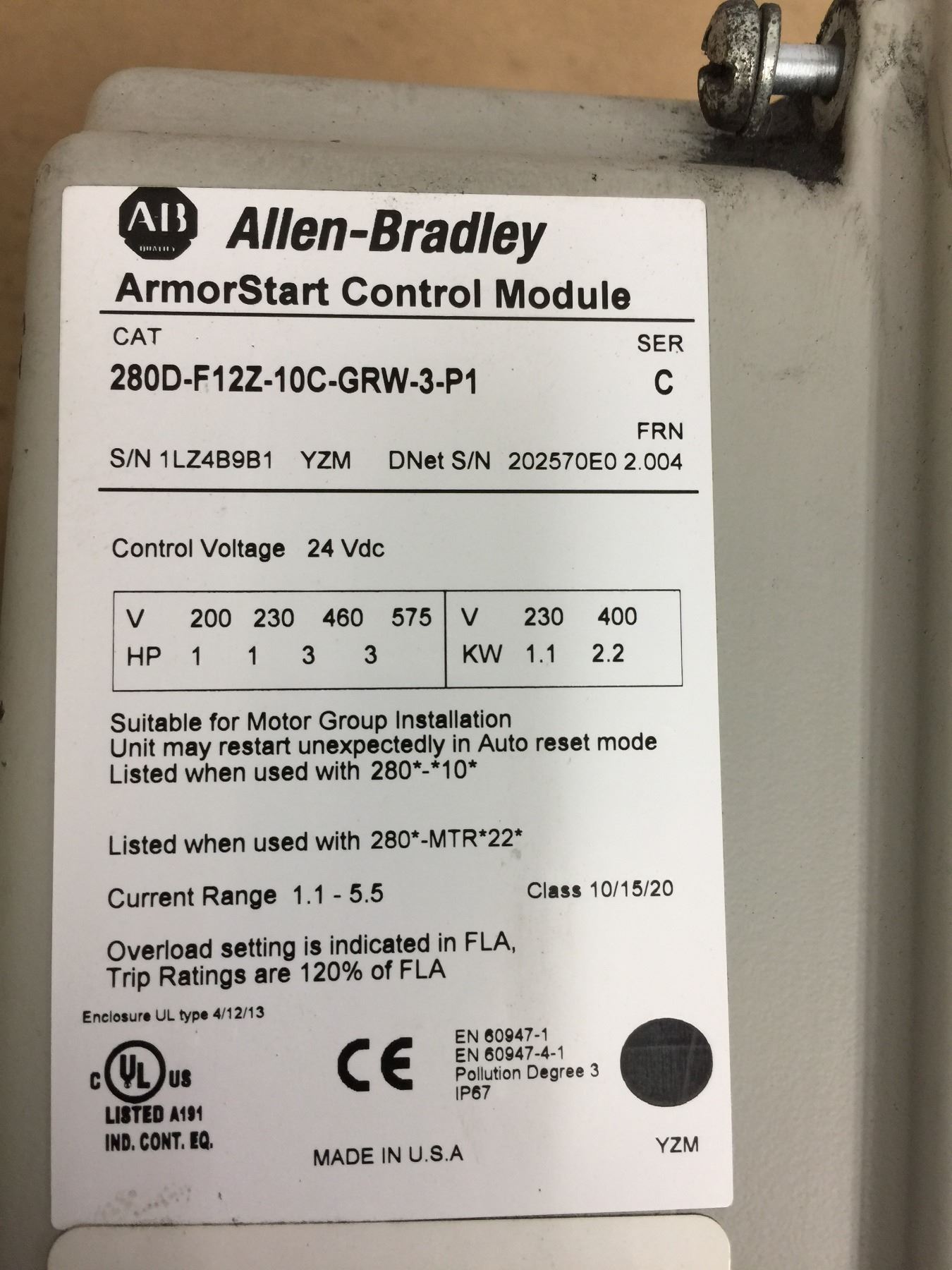 (2) Allen-Bradley 280D-F12Z-10C-GRW-3-P1 ArmorStart Control Module