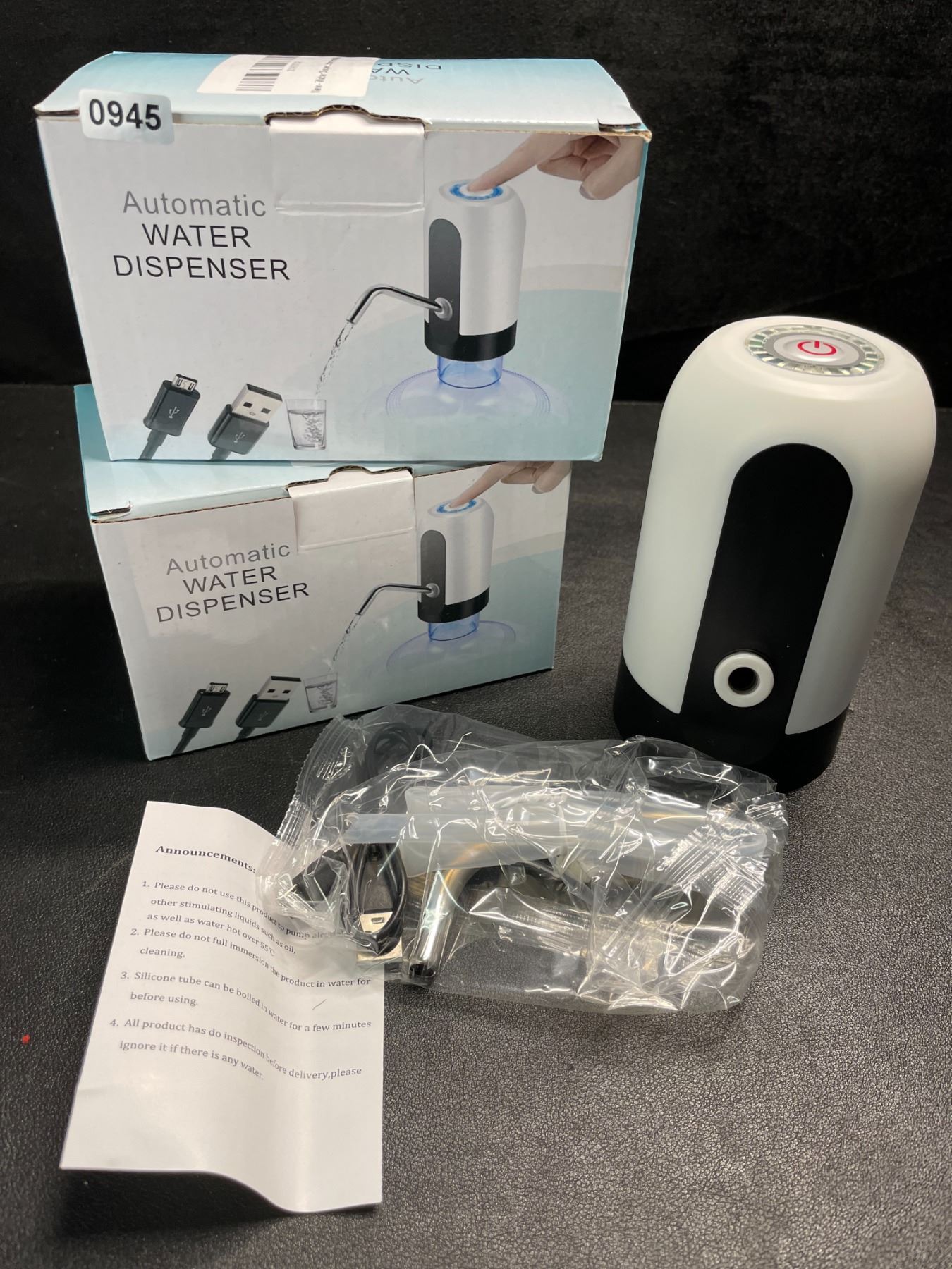 Water Dispenser for 5 Gallon Bottle, Portability Electric Water Pump with USB Charging Cable; White Automatic Drinking Water Bottle Pump for Travel, Kitchen, Home, Office etc.