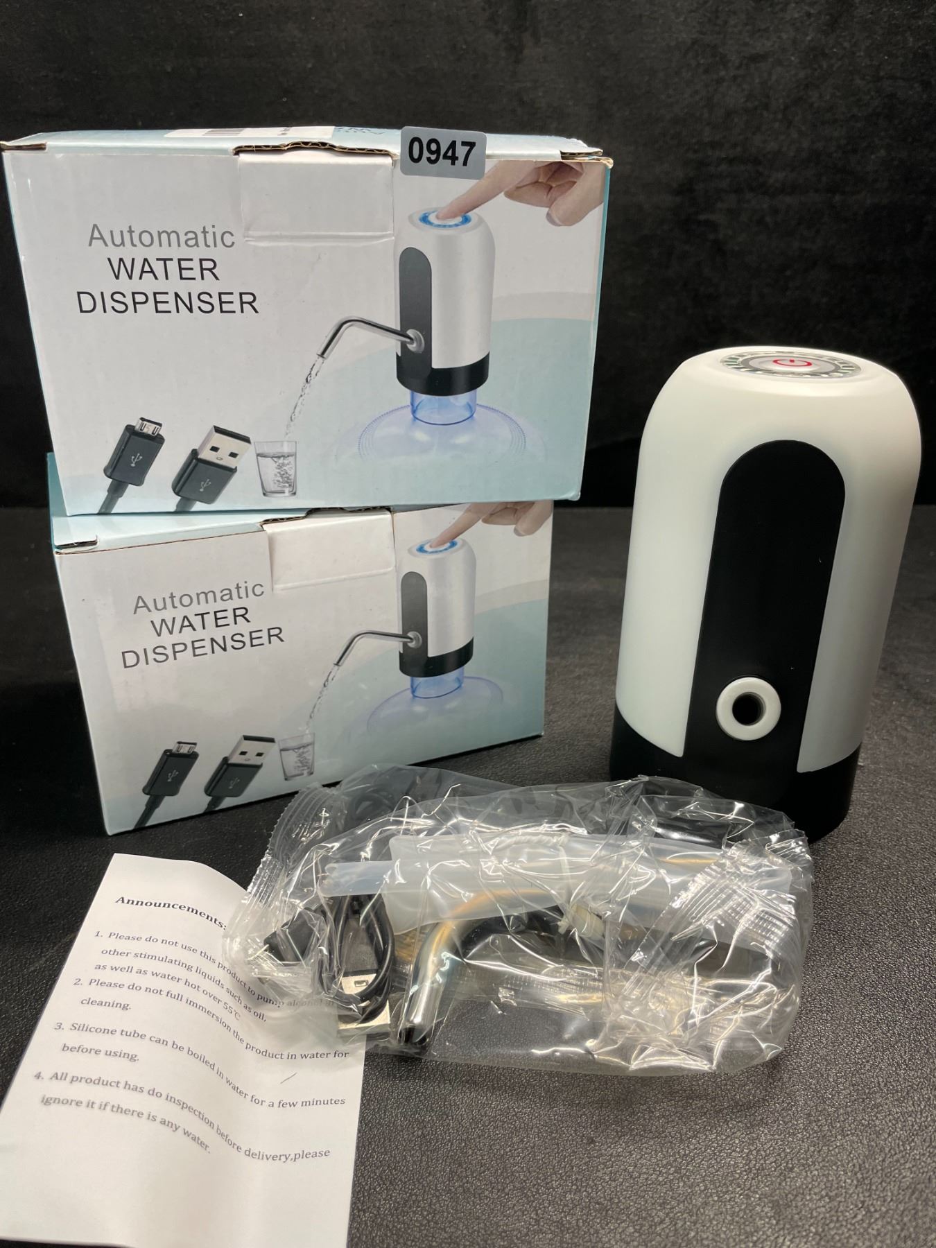 Water Dispenser for 5 Gallon Bottle, Portability Electric Water Pump with USB Charging Cable; White Automatic Drinking Water Bottle Pump for Travel, Kitchen, Home, Office etc.