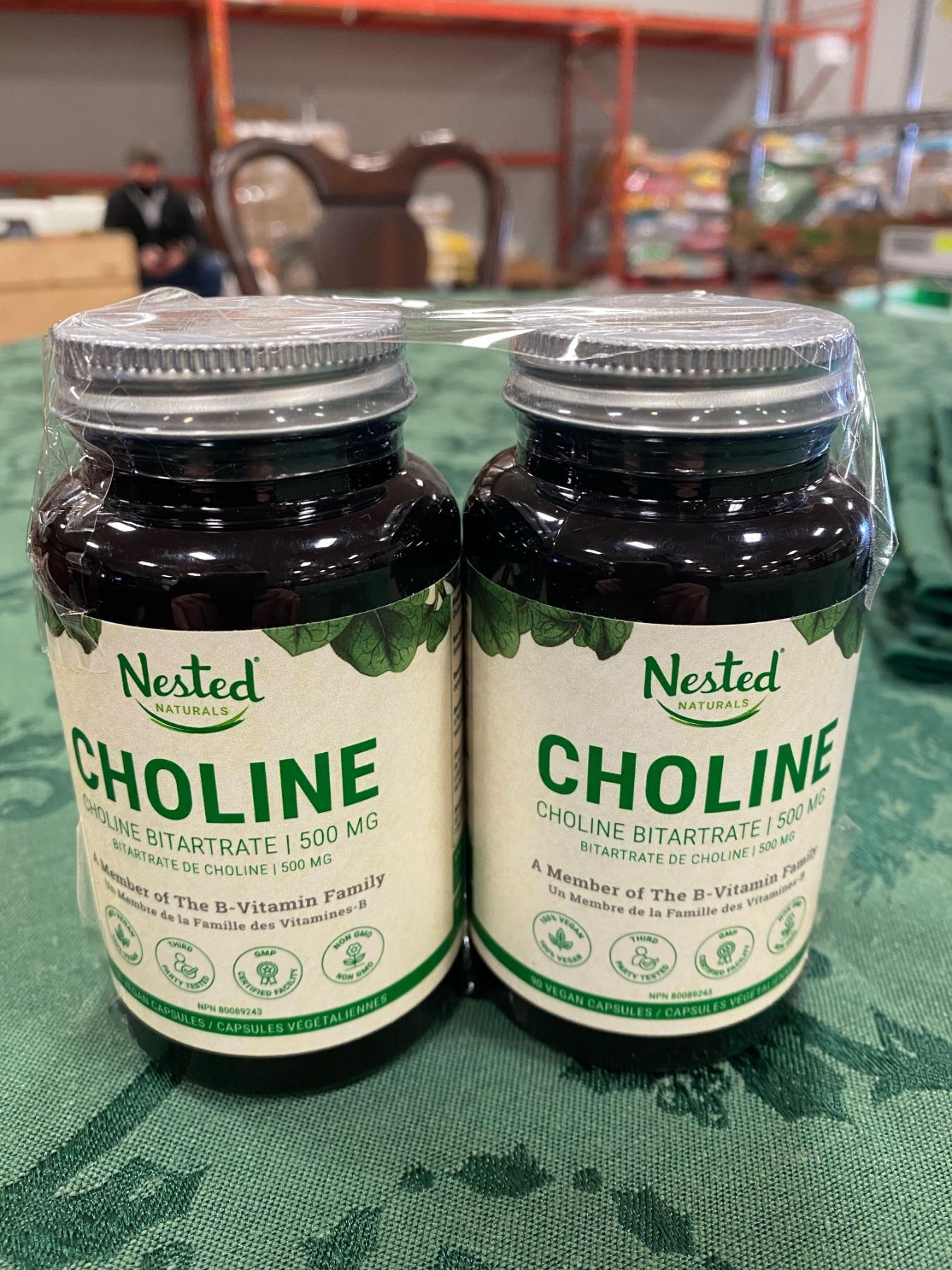 2 BOTTLES CHOLINE CAPSULES, ANXIETY RELIEF, 90 TABLETS PER BOTTLE, 100% VEGAN, CHOLINE PRENATAL SUPP