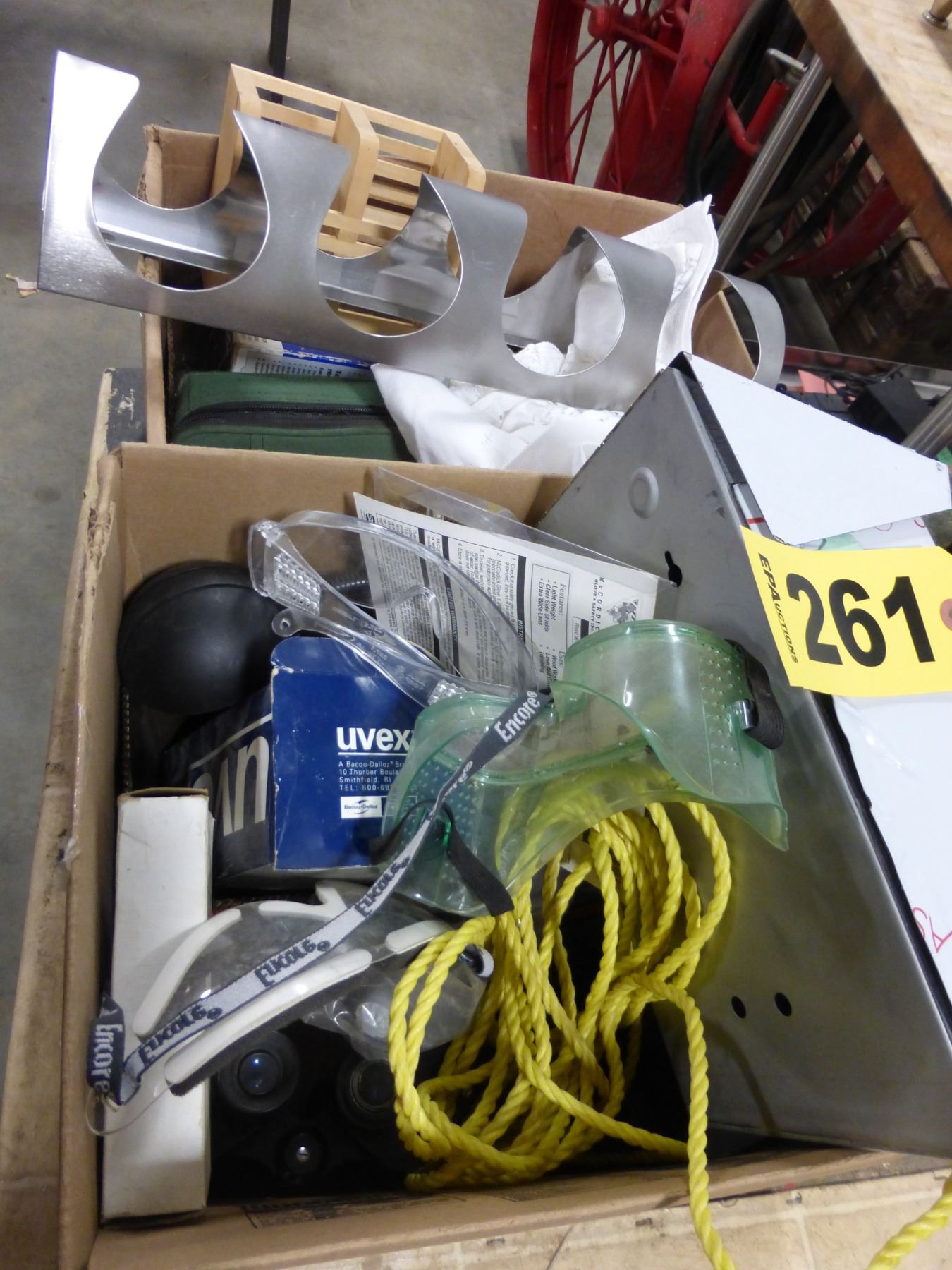 2 BOXES WITH TIMER, LINEN, SAFETY GLASSES, ETC