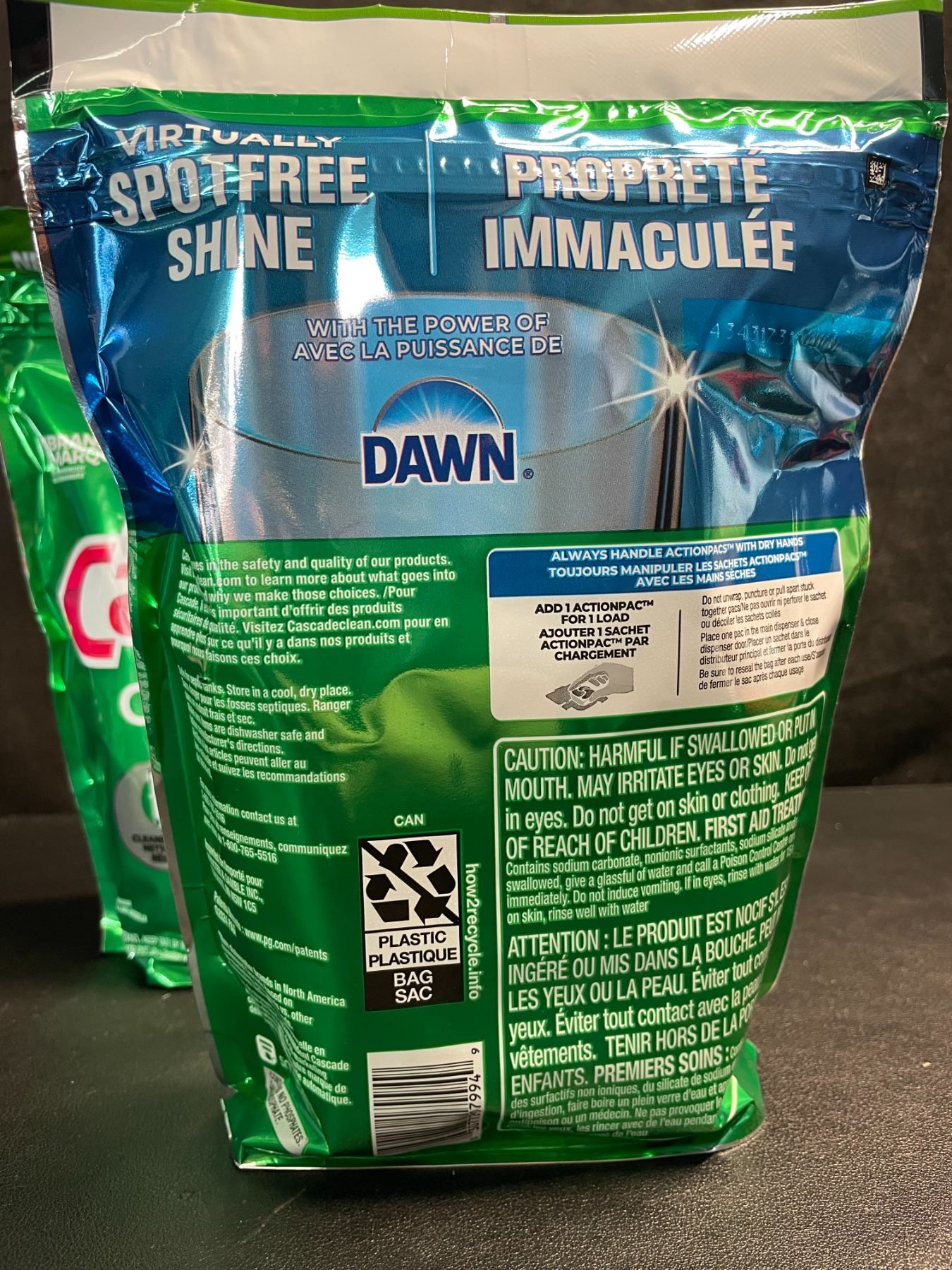 2 Bags of Cascade Complete Fresh Scent w/ Dawn Dishwasher Pods (32 Pods Each) - New