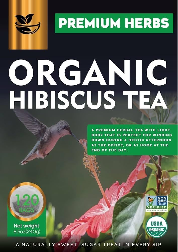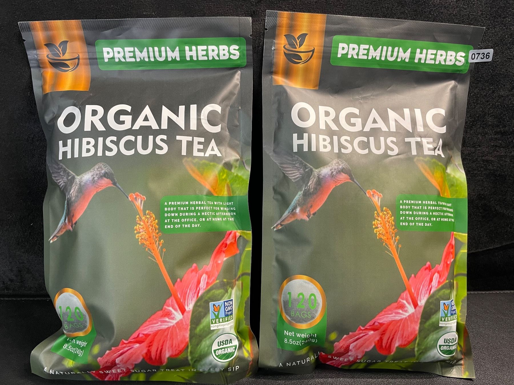 2 Bags of Premium Herbs Organic Hibiscus Herbal Tea - 120 Tea Bags Each - New (Exp: 02/2026)