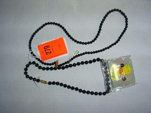 2 black onyx necklaces: 1 6mm 22" black onyx; 1 8mm 16" black onyx chocker with earrings