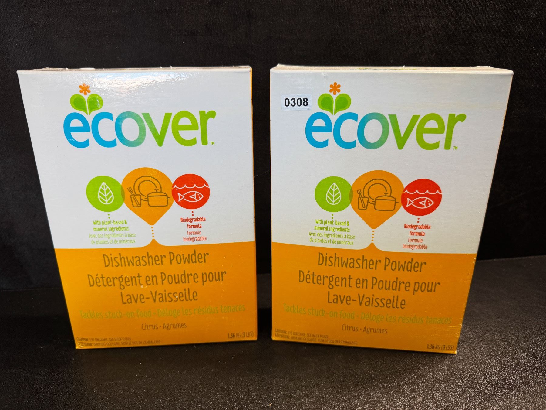 2 Boxes of Ecover Natural Plant-Based Dishwasher Powder - Citrus - 1.36kg - New Sealed