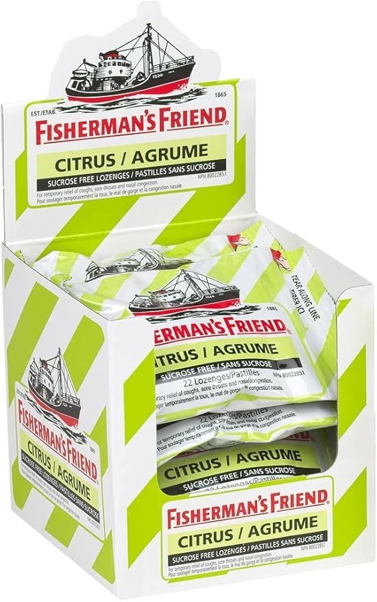 Fisherman’s Friend – Sugar Free Citrus | For Temporary Relief of Cough, Sore Throat & Nasal Congestion | No Sugar | Halal, Vegan, Kosher & Gluten Free | 8 Packs of 22 Lozenges (176 Total Count) Per Box*