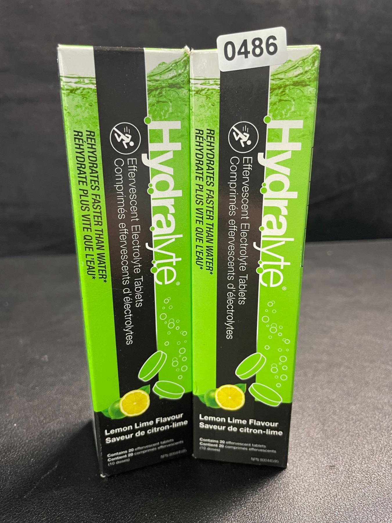 2 Boxes of Hydralyte Electrolyte Tablets; Lemon Lime Flavour - 20 Per Box - New