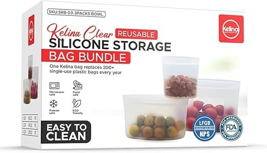 Kelina Reusable Silicone Storage Bag,3-Packs bowls Bundle, Food Storage Container set,Microwave and Dishwasher Safe,Clear