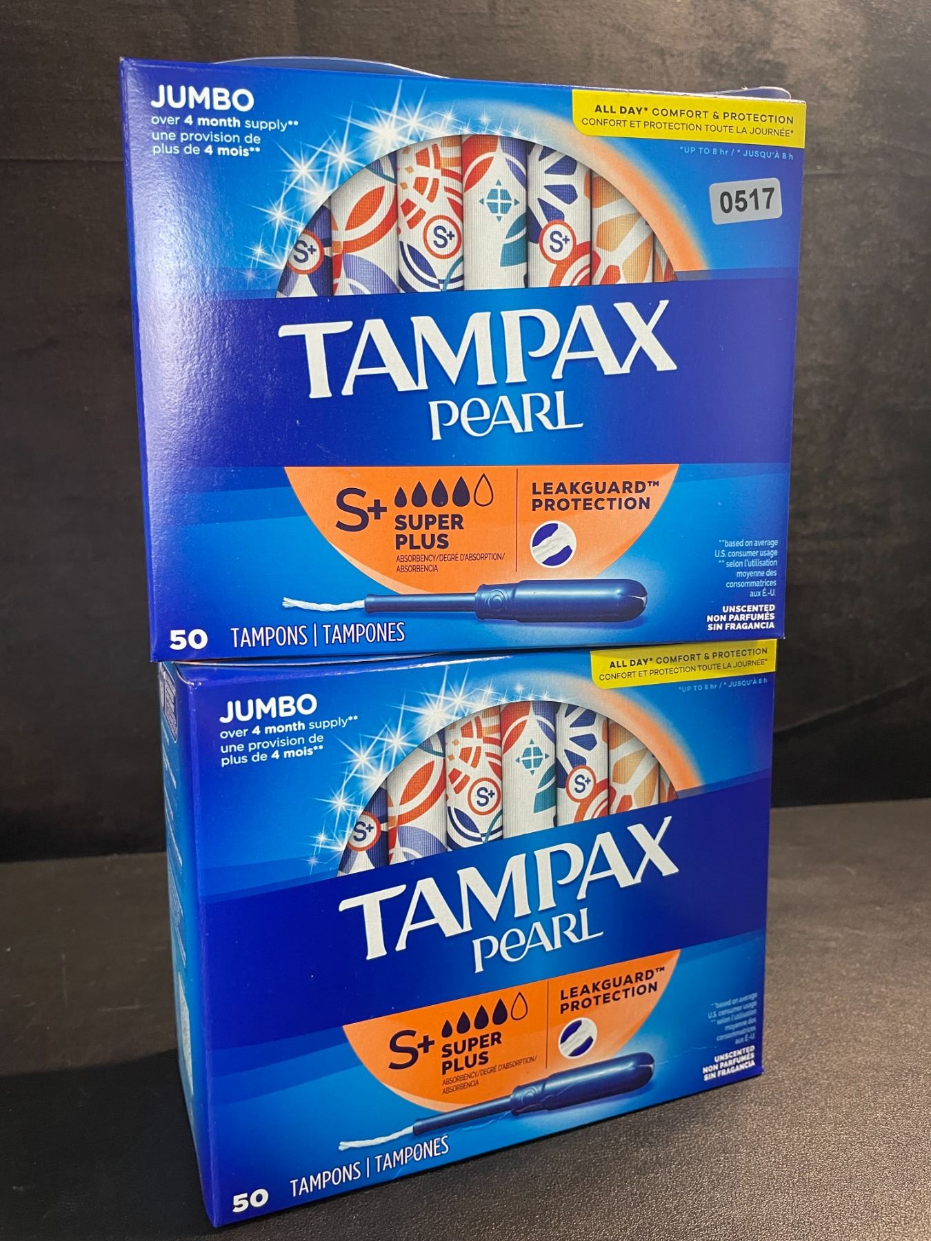 2 Boxes of Tampax Pearl Tampons - Super Plus - 50 Per Box - New Sealed