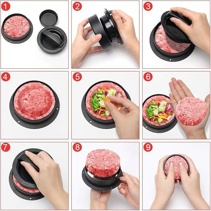 Burger Press Kit; Hamburger Patty Maker Stuffed Burgers Press with 100p Hamburger Paper for BBQ Non-Stick Sliders Beef Hamburger Push (Black)