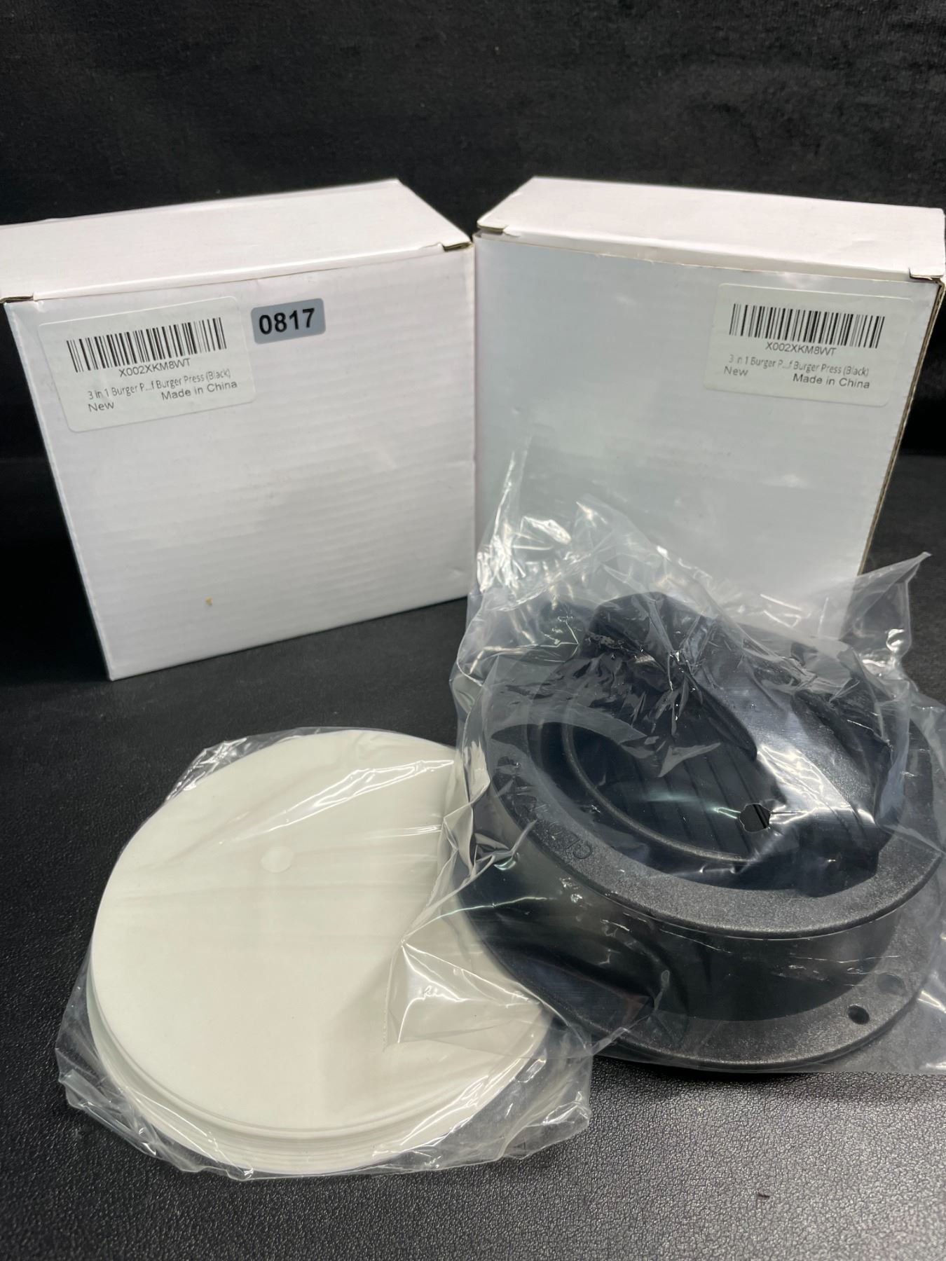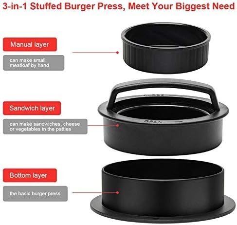 Burger Press Kit; Hamburger Patty Maker Stuffed Burgers Press with 100p Hamburger Paper for BBQ Non-Stick Sliders Beef Hamburger Push (Black)