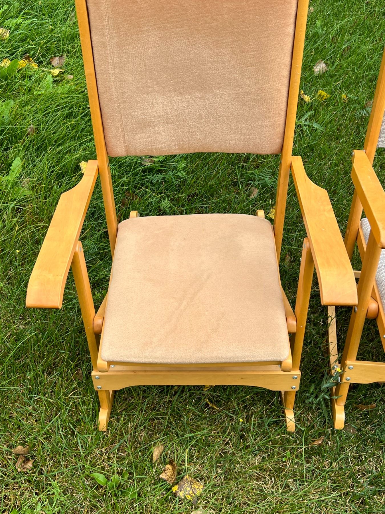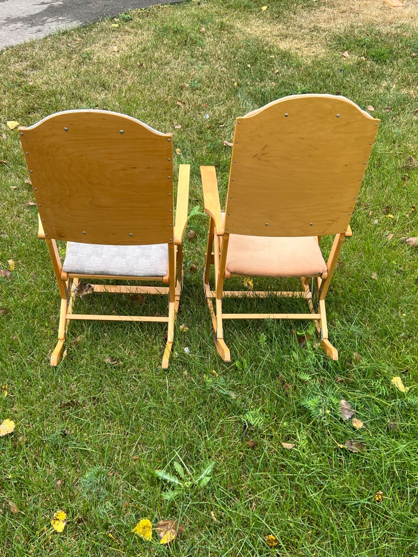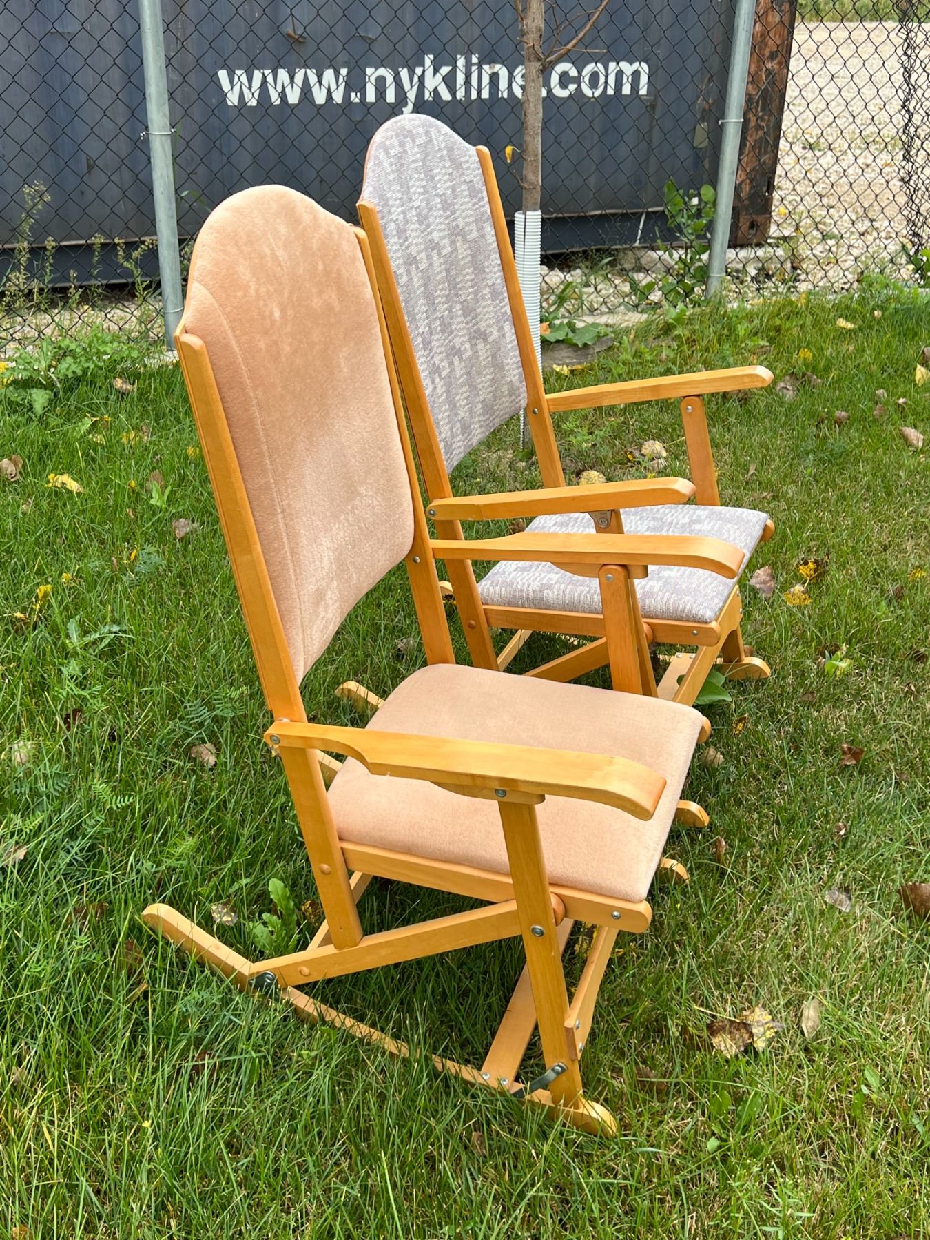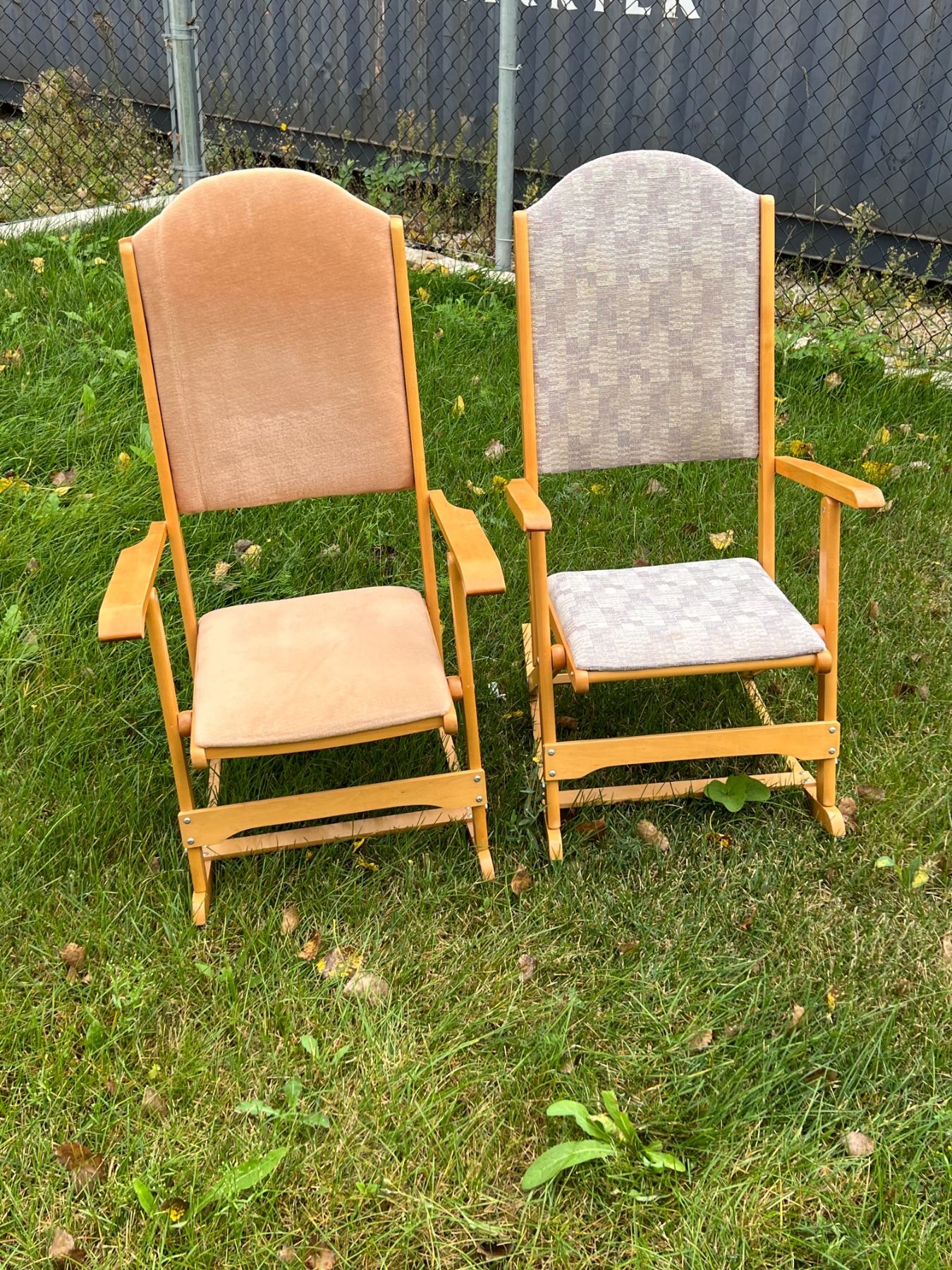 2 Canadian Wood Fold Up High Back Rocking Chairs - Clement 2418 & St-Yves No.100 - see all photos