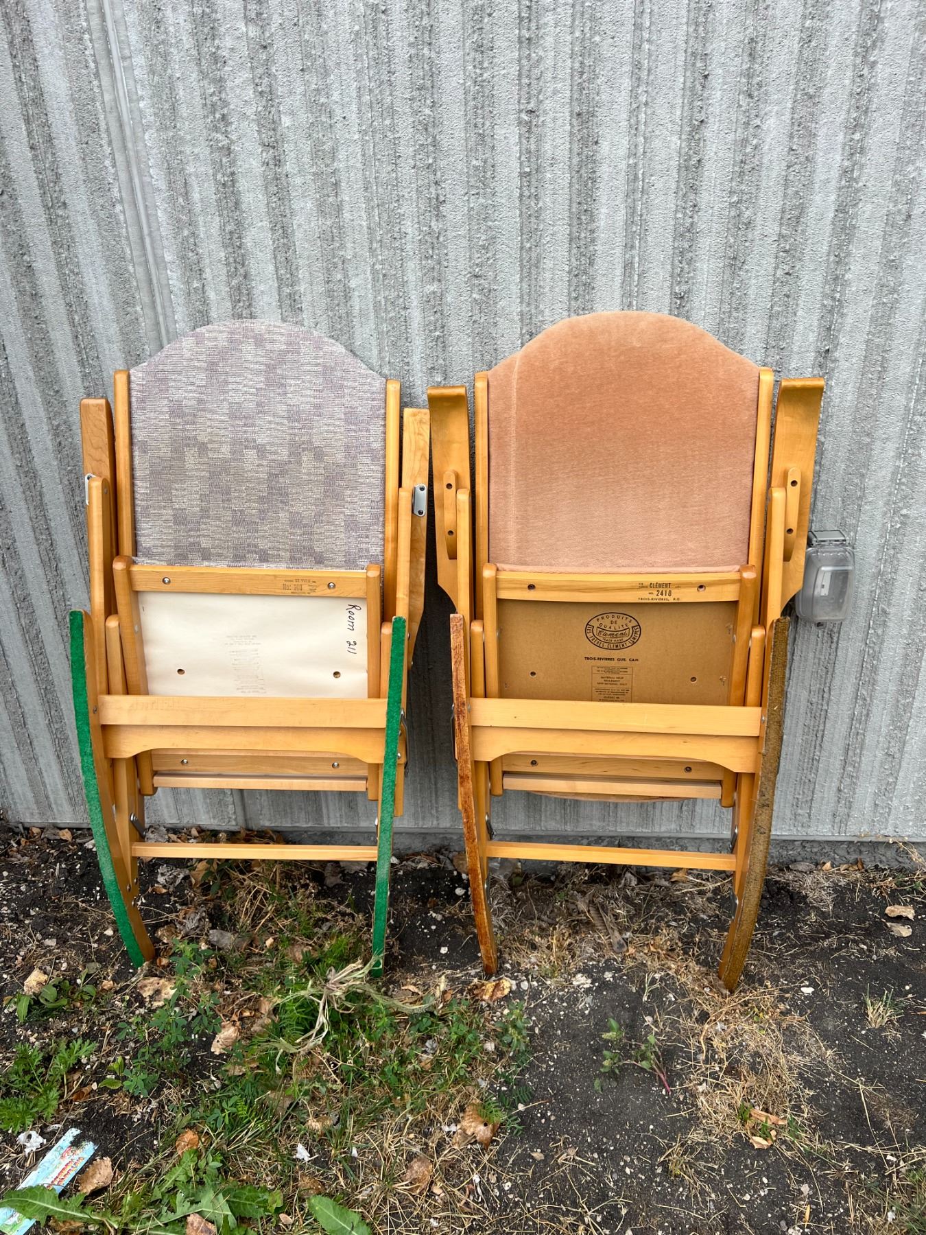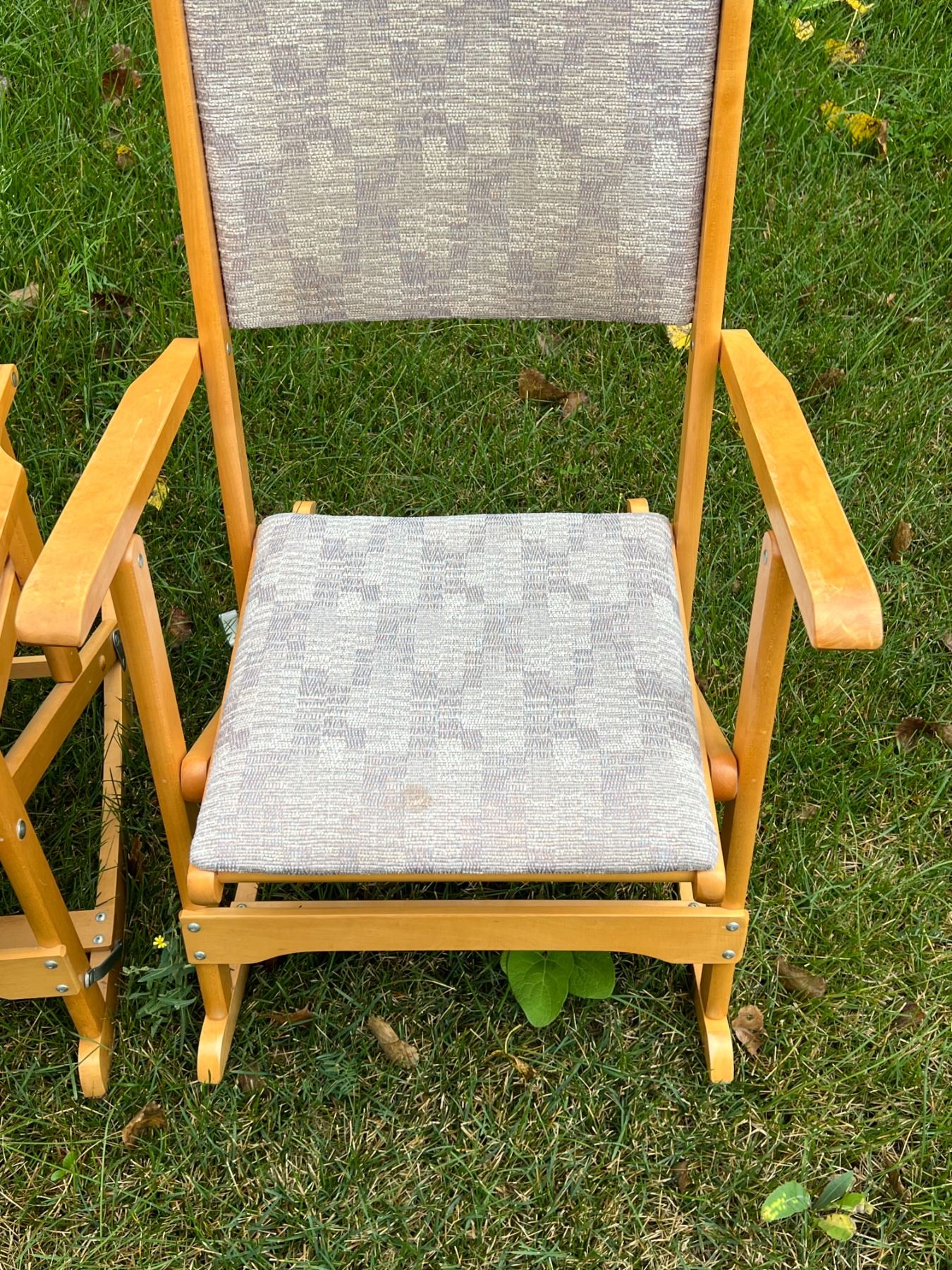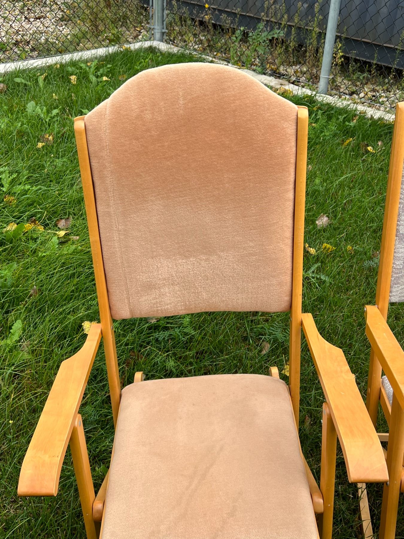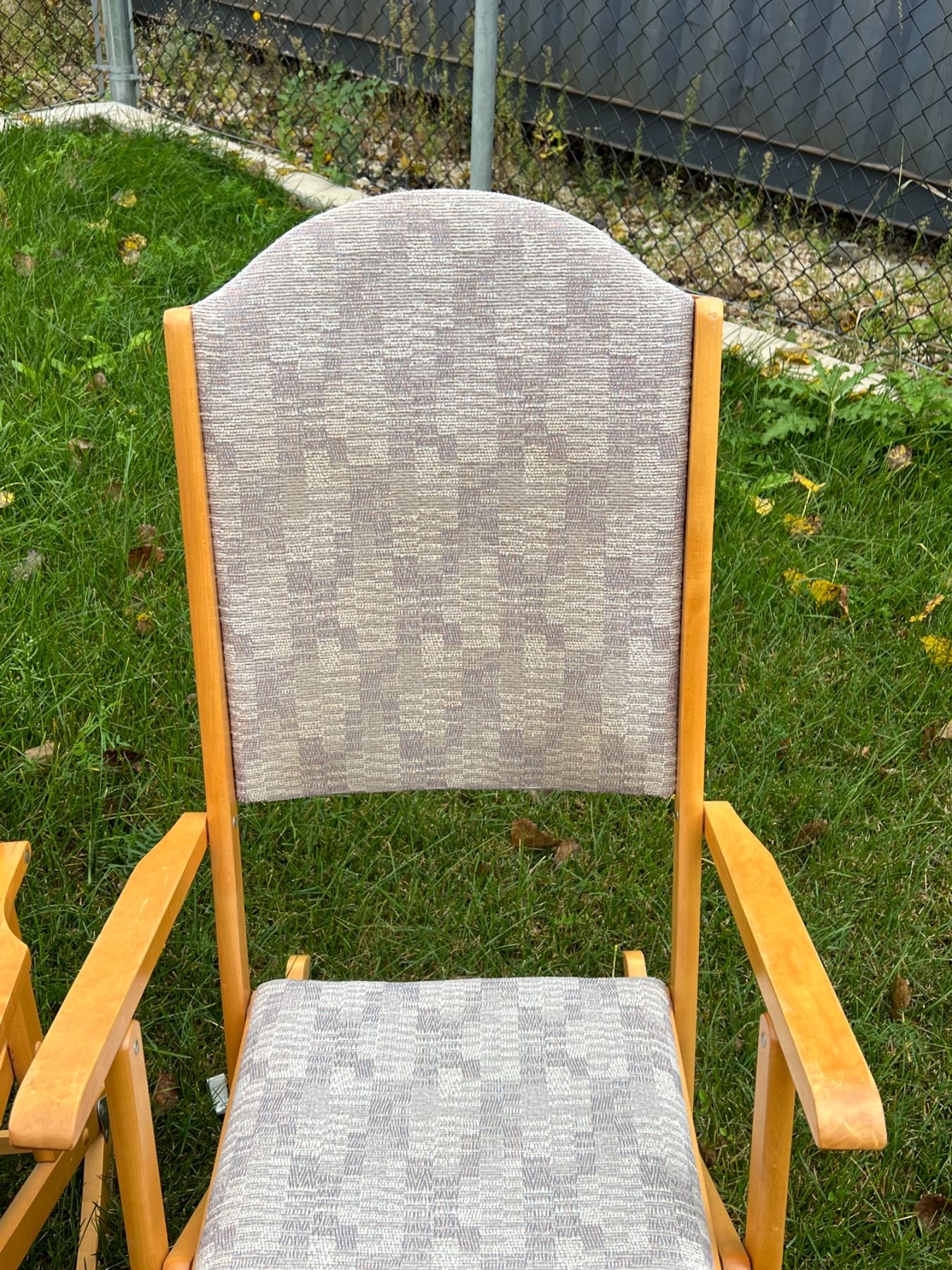 2 Canadian Wood Fold Up High Back Rocking Chairs - Clement 2418 & St-Yves No.100 - see all photos