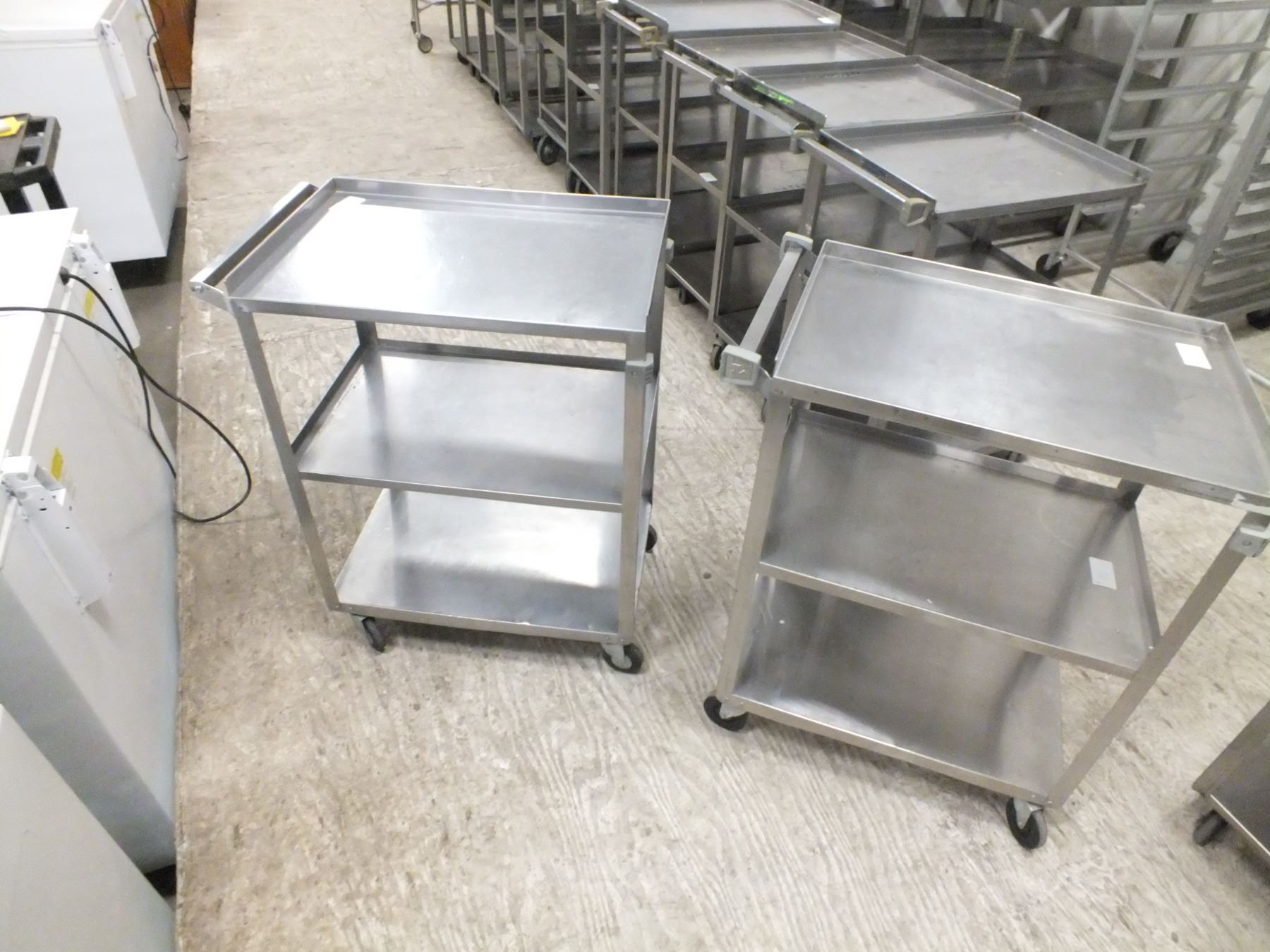 2 Catering Carts On Wheels, 27"l 18"w 27"h, you get them both for one money...used