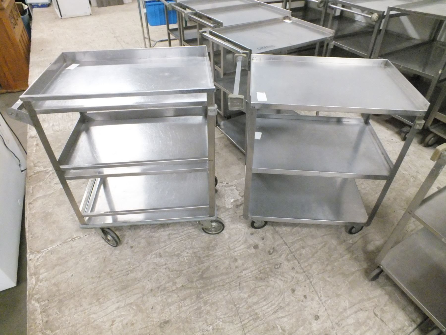 2 Catering Carts On Wheels, 27"l 18"w 35"h, you get them both for one money...used