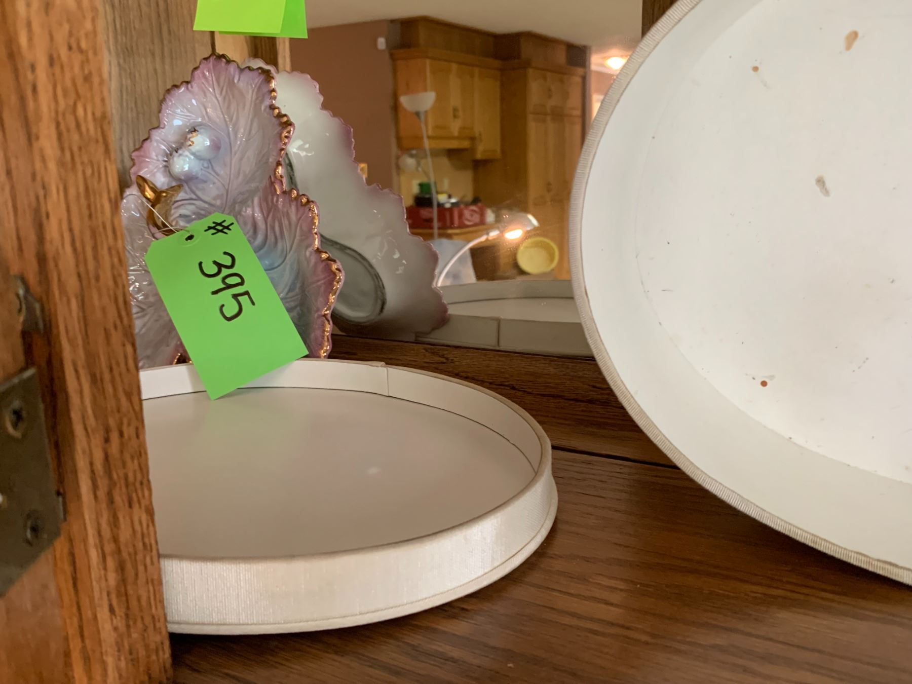 2- Ceramic figurines, 2- decorative bowls & hat box