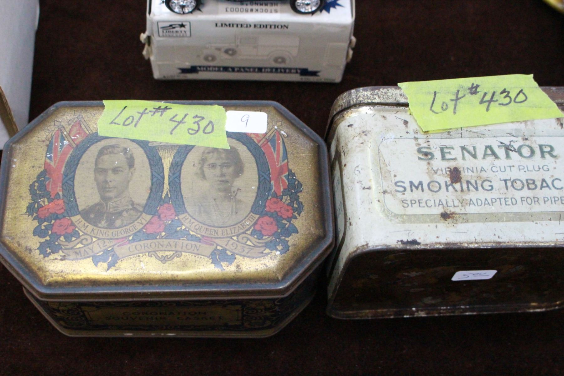 2 Collector Tins - "Coronation Casket Tin" & "Senator" Tobacco Tin