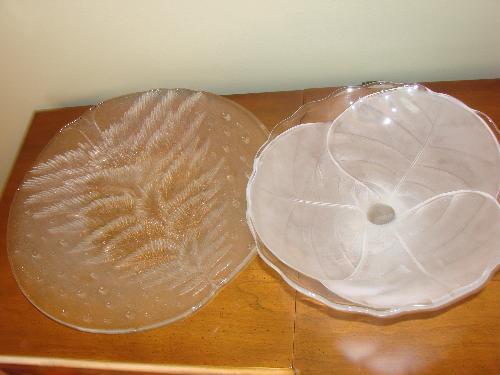 2 Crystal Serving dishes, holiday platter, large leaf pattern compote