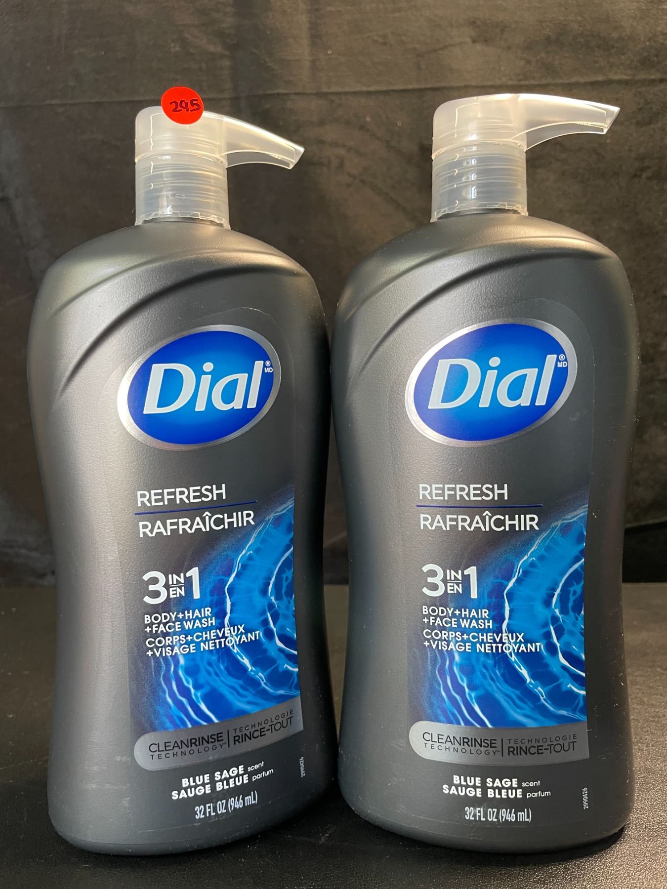 2 Dial Refresh 3in1 Body Wash - Blue Sage Scent - 946ml Each (Large Pump-Action Bottles) - New