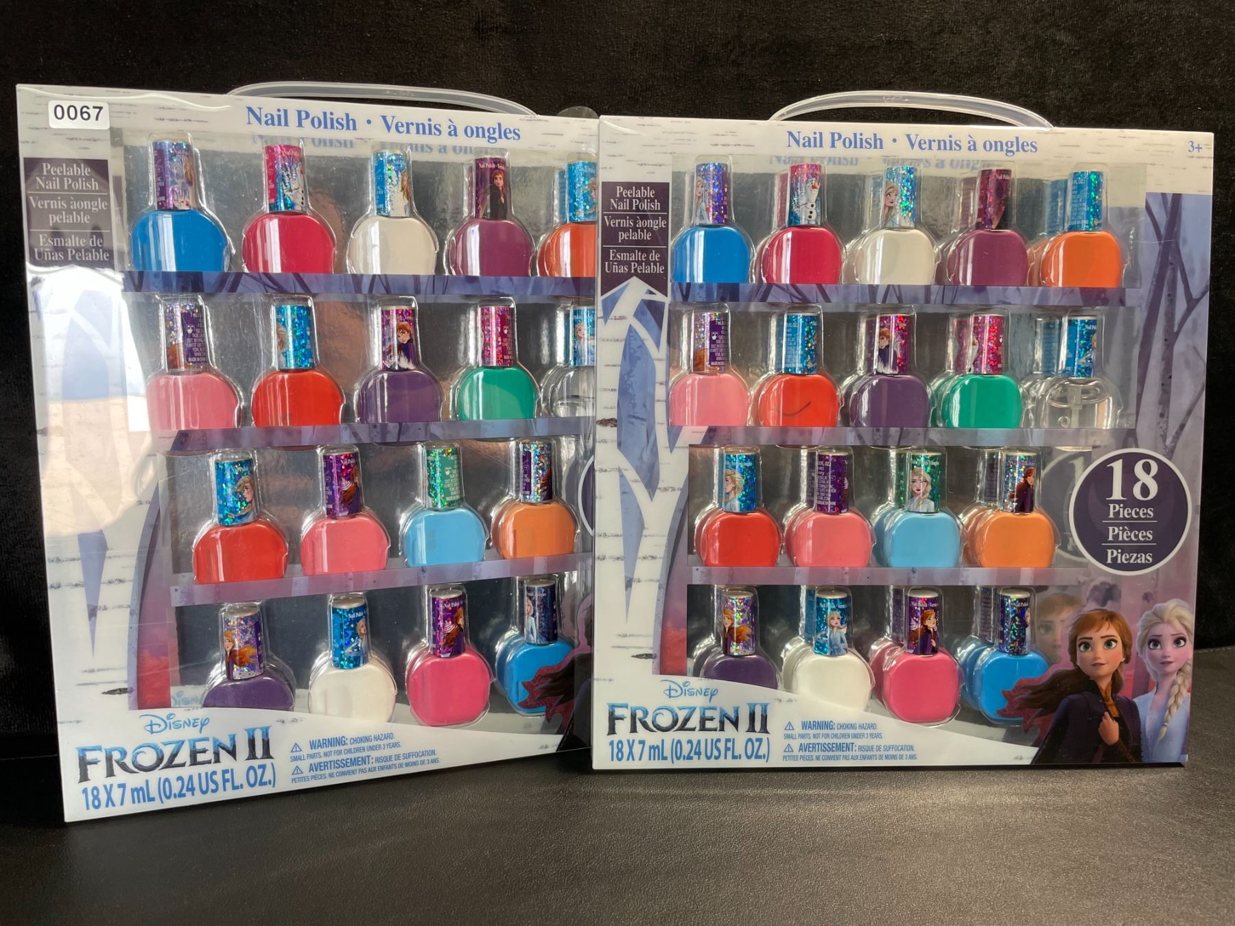 2 Disney Frozen II Peelable Nail Polish Sets for Girls (18 x 7ml Colours Per Pack) - New