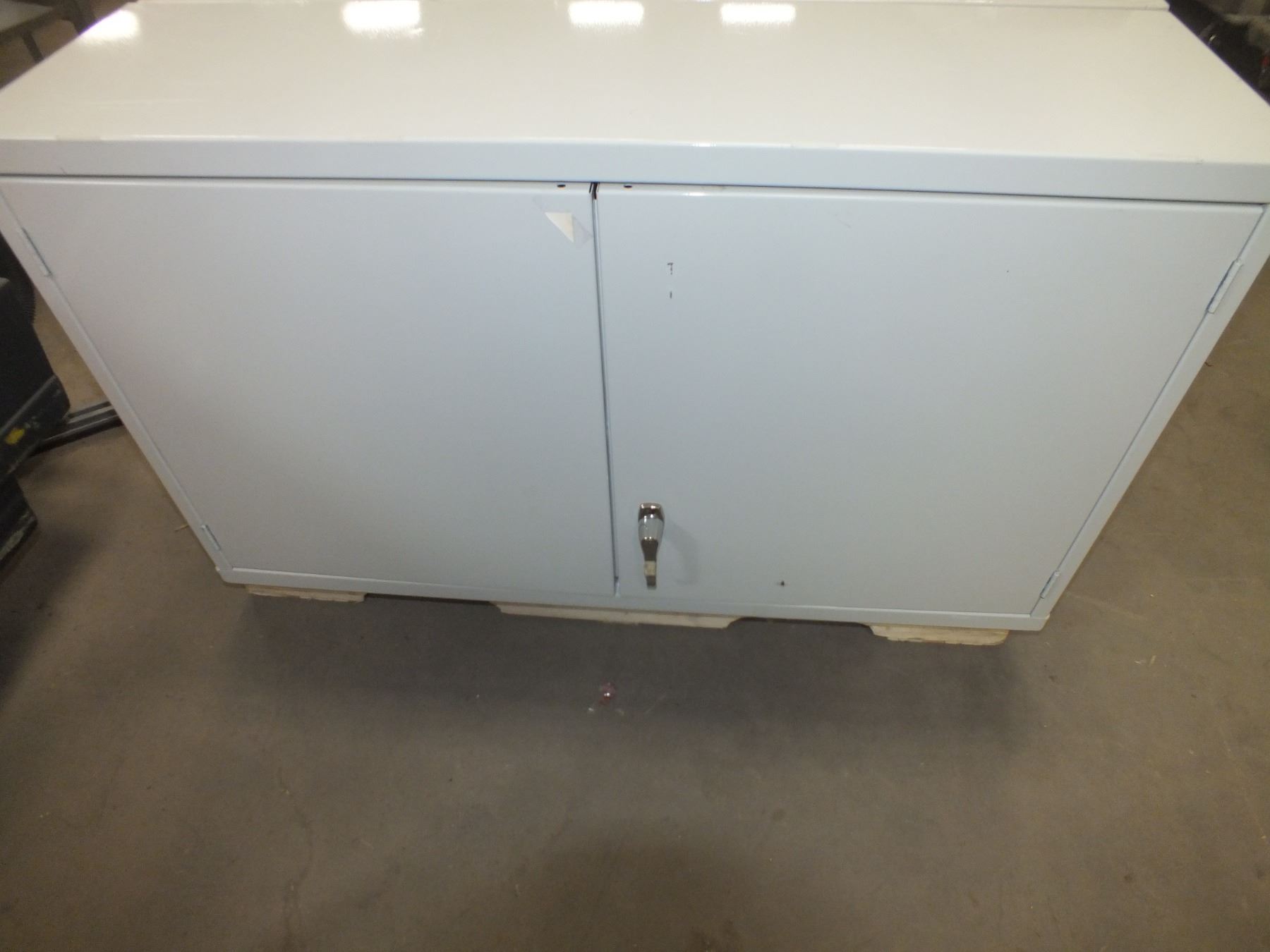 2 Door Metal Storage Cabinet, 48"l 13 1/2"w 27"h...used