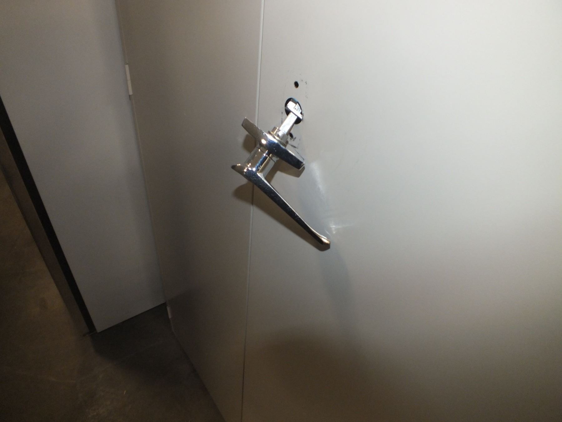 2 Door Metal Storage Cabinet, has a bad handle, 36"l 18"w 72"h...used