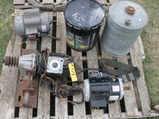 2 ELECTRIC MOTORS, 12V WELDER, GAS CAN