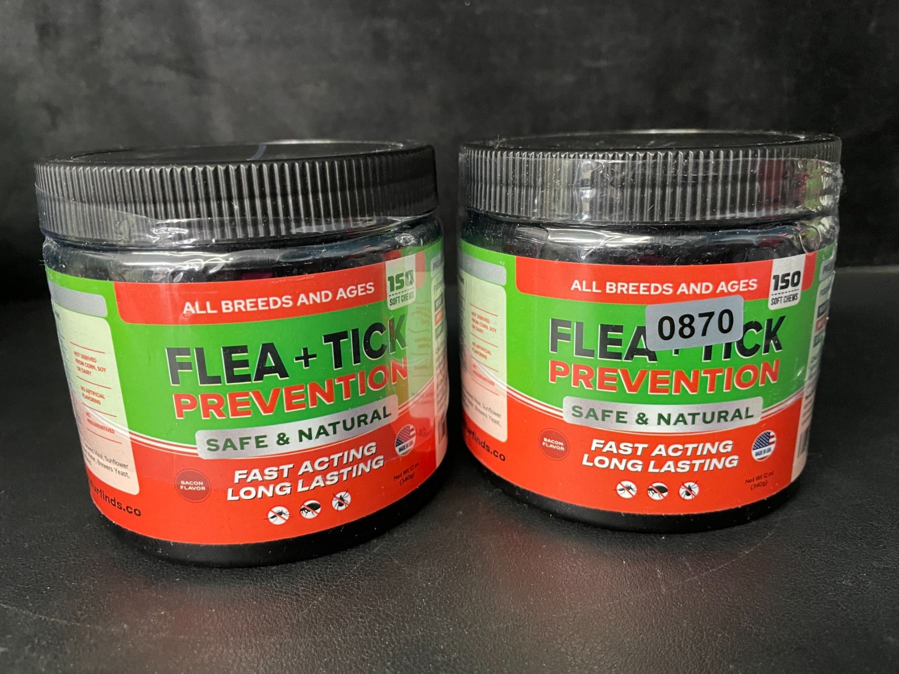 2 Furfinds Flea + Tick Prevention Soft Chews for Dogs - Safe & Natural - 150 Each - New Sealed