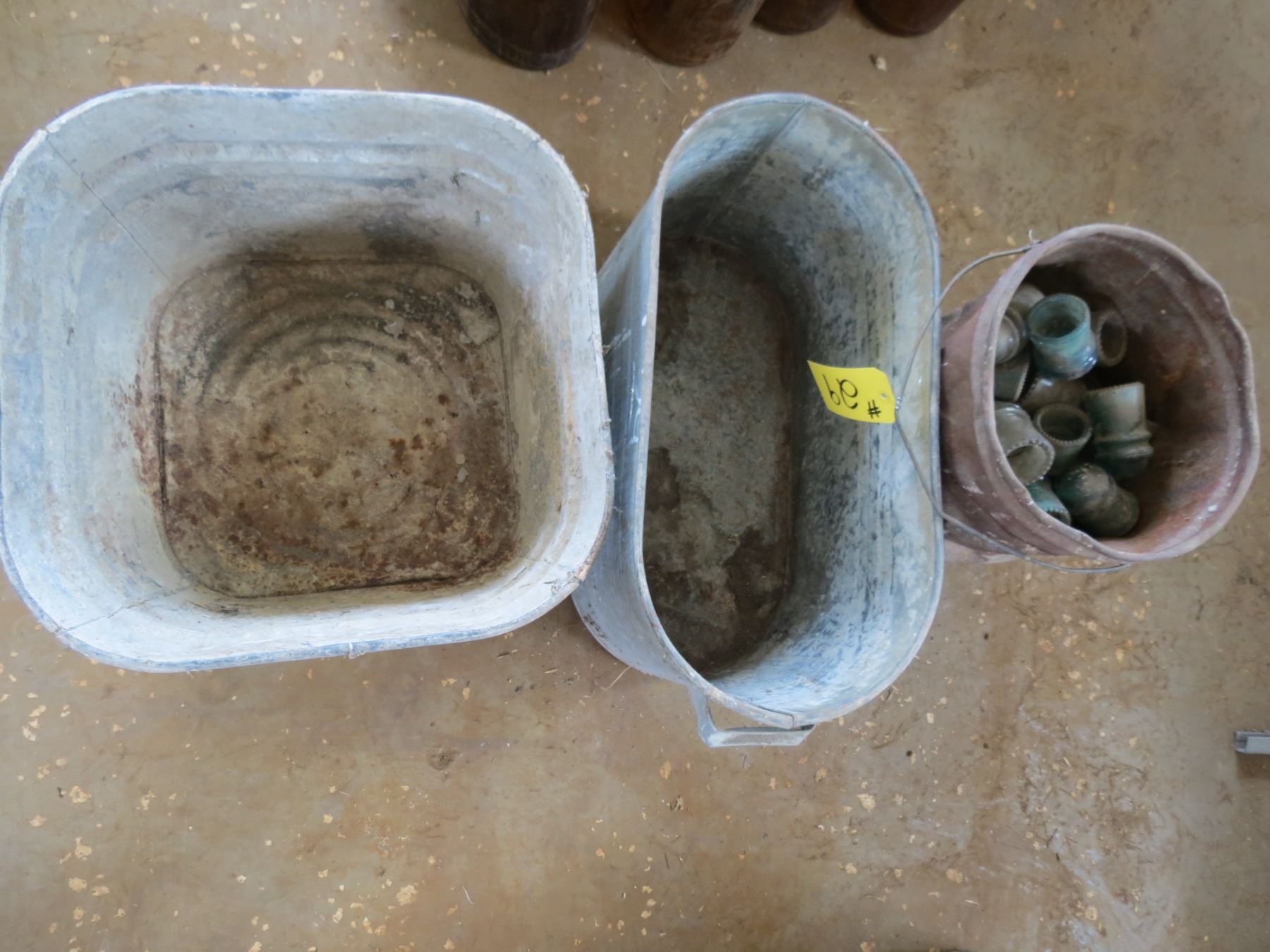 2 - GALVANIZED WASH TUBS, GLASS INSULATORS