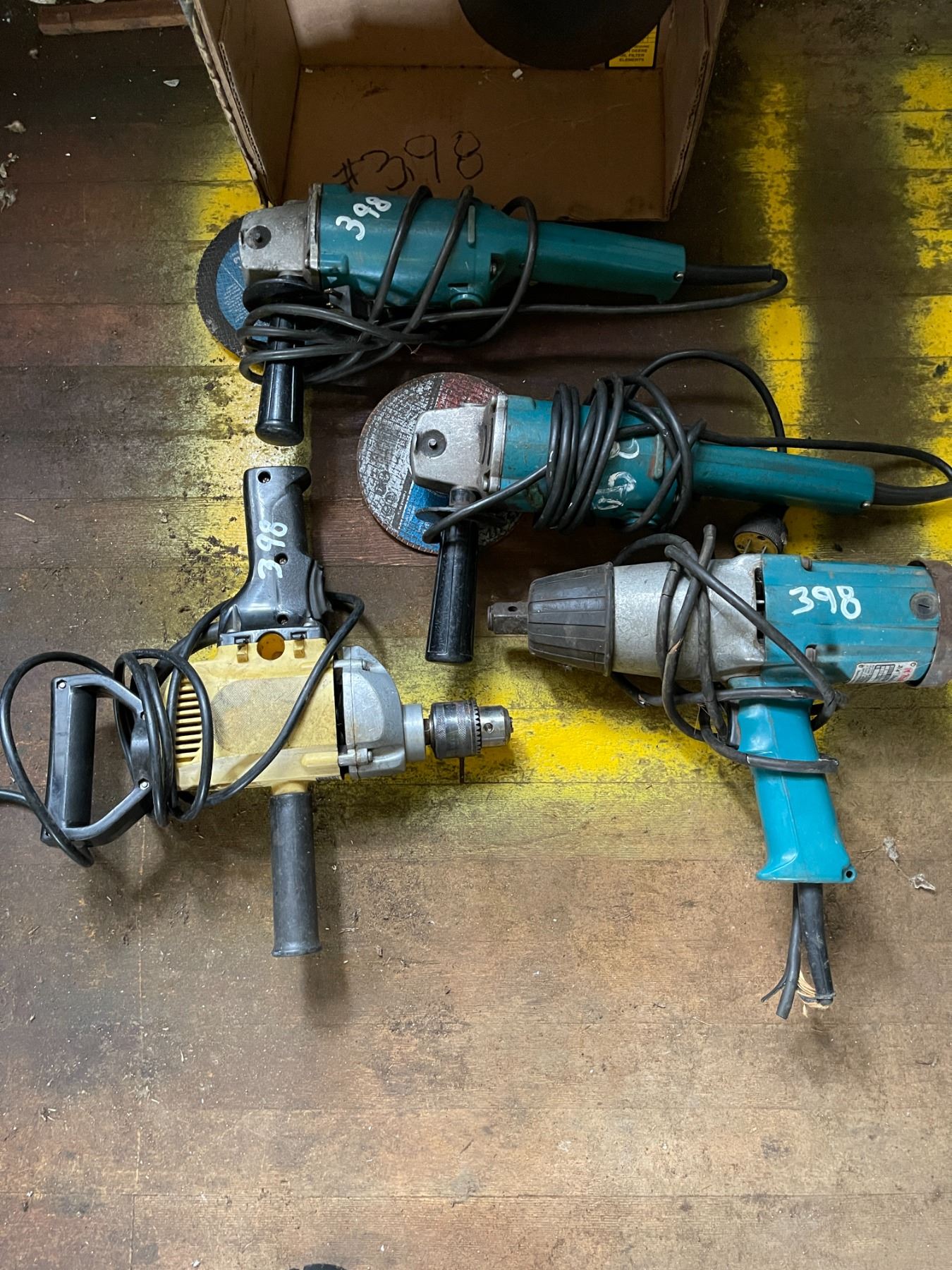 2- Grinders, elec. Drill, 3/4 Makita impact, working