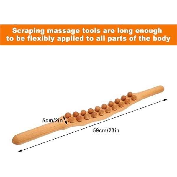 Guasha Wood Stick Tools, 20 Beads Wooden Massage Stick Scraping Massage Bar, Guasha Wood Tool for Body Back Leg Belly Shoulder, Wood Therapy Massage Tool Trigger Point Massager Stick