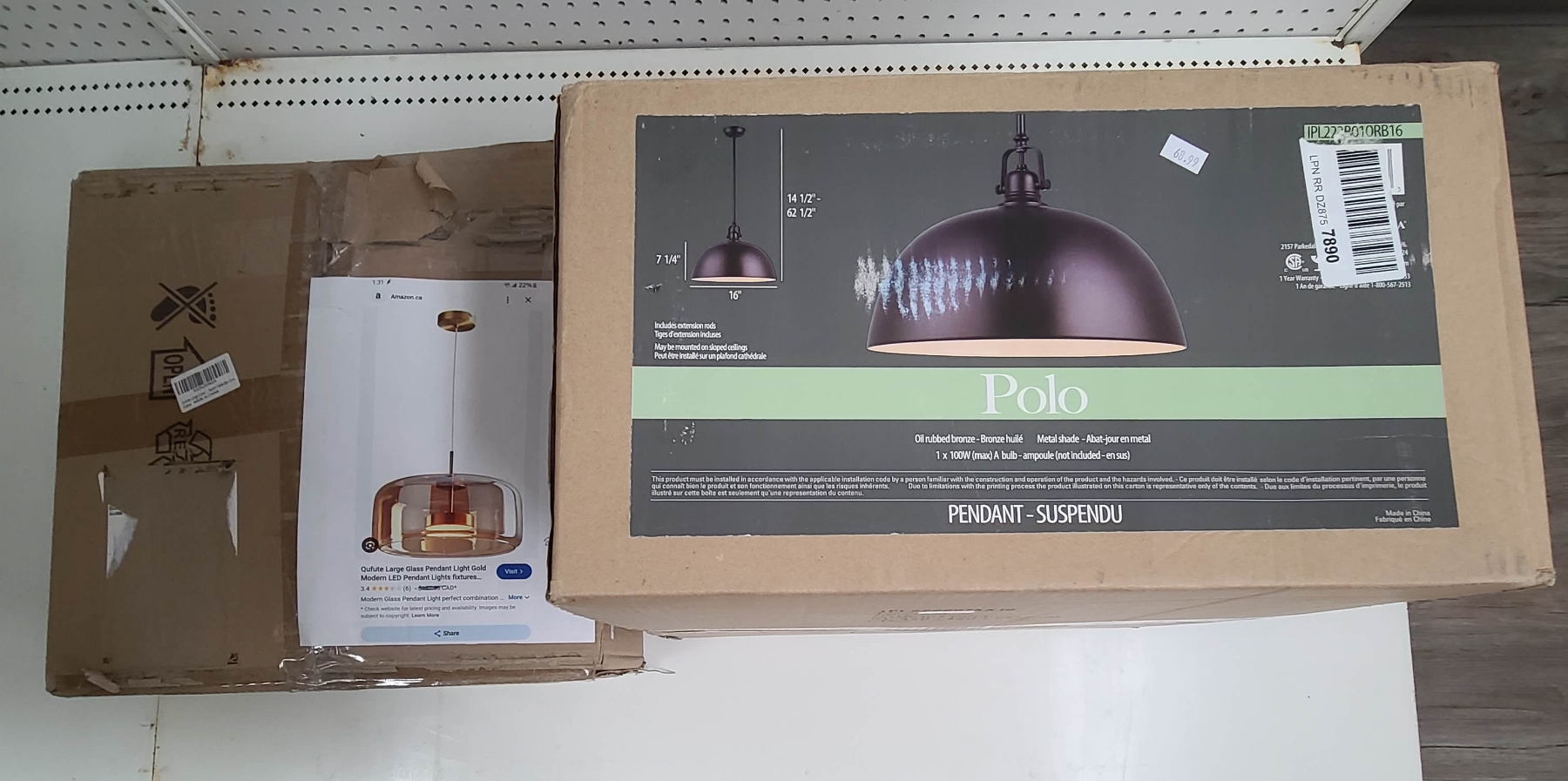 INCL QUFUTE LARGE GLASS PENDANT LIGHT GOLD MODERN LED ETC OPEN BOX