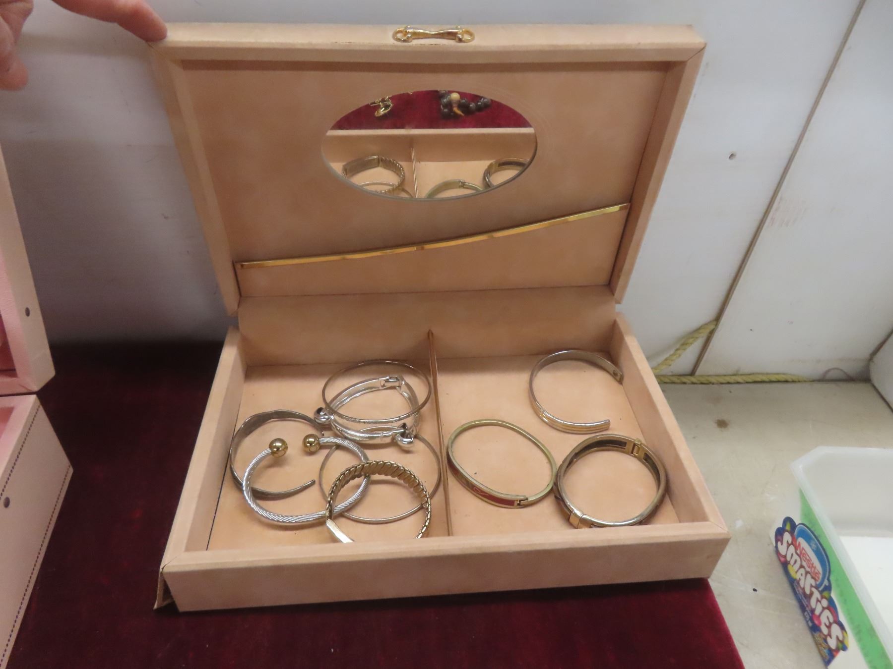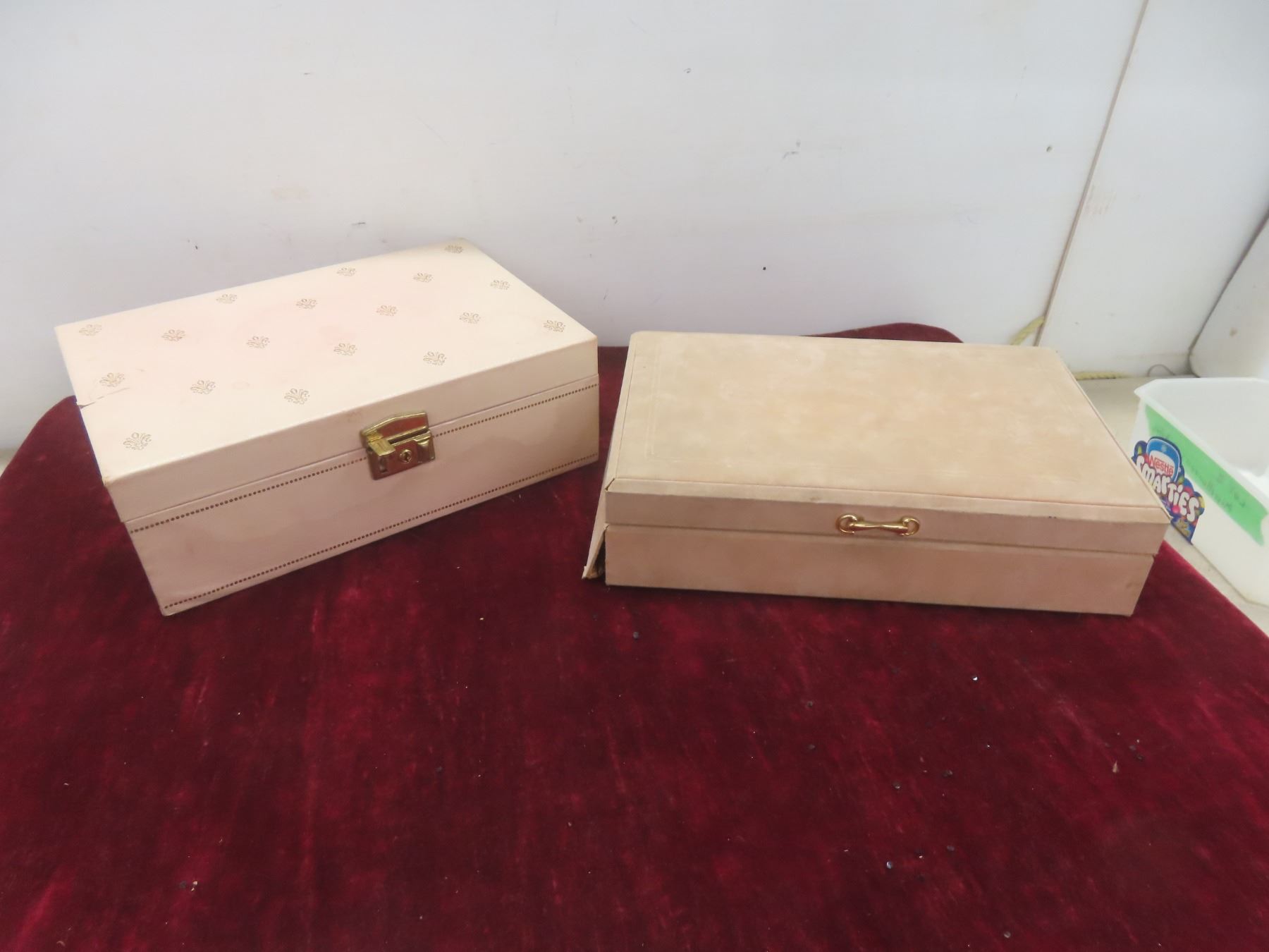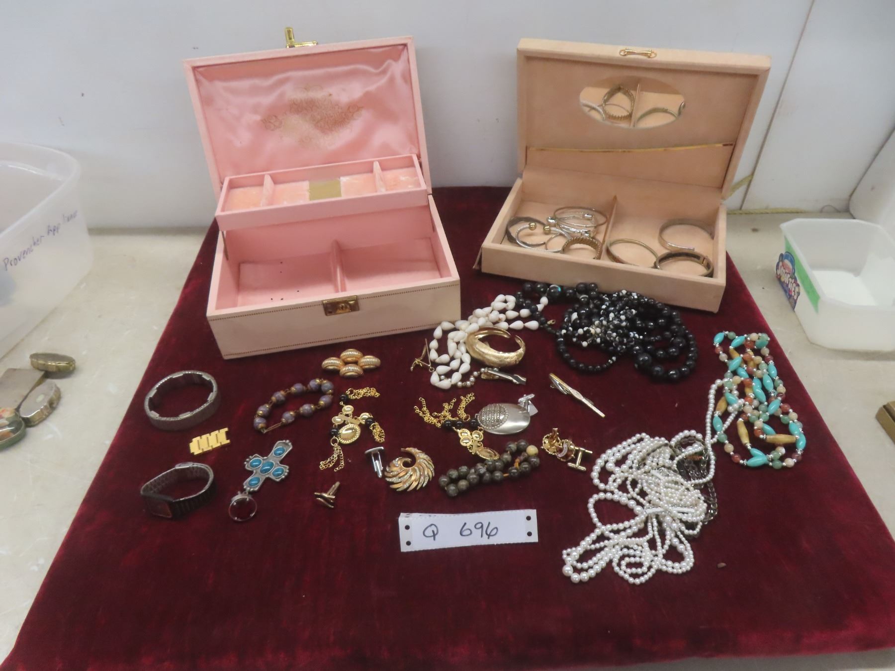 2 Jewelry Boxes with Fashion Jewelry: Beads, Bracelets, Brooches, Cuff Links, Tie Clips