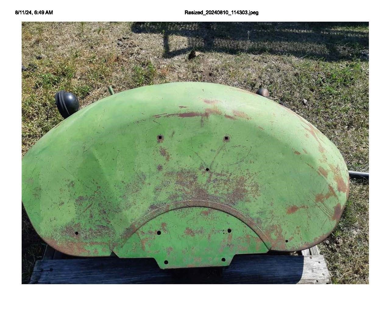 2 - John Deere 3020 Fenders left and right really good shape just sun burnt. PH Kirby- (780) 910-1461. Directions: From Vinca Bridge go east 6 km on hwy 38 to junction of 38 and 45. Turn left onto RR202 and go 3km north to TWP. RD. 572 turn right and go 1/4-mile, first farm house on the left white siding and blue roof.