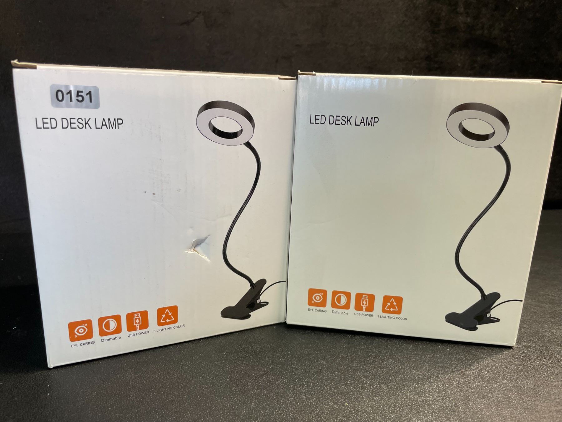 2 LED Flexible Clamp-On Desk Lamps/Lights - USB-Powered - Brand New