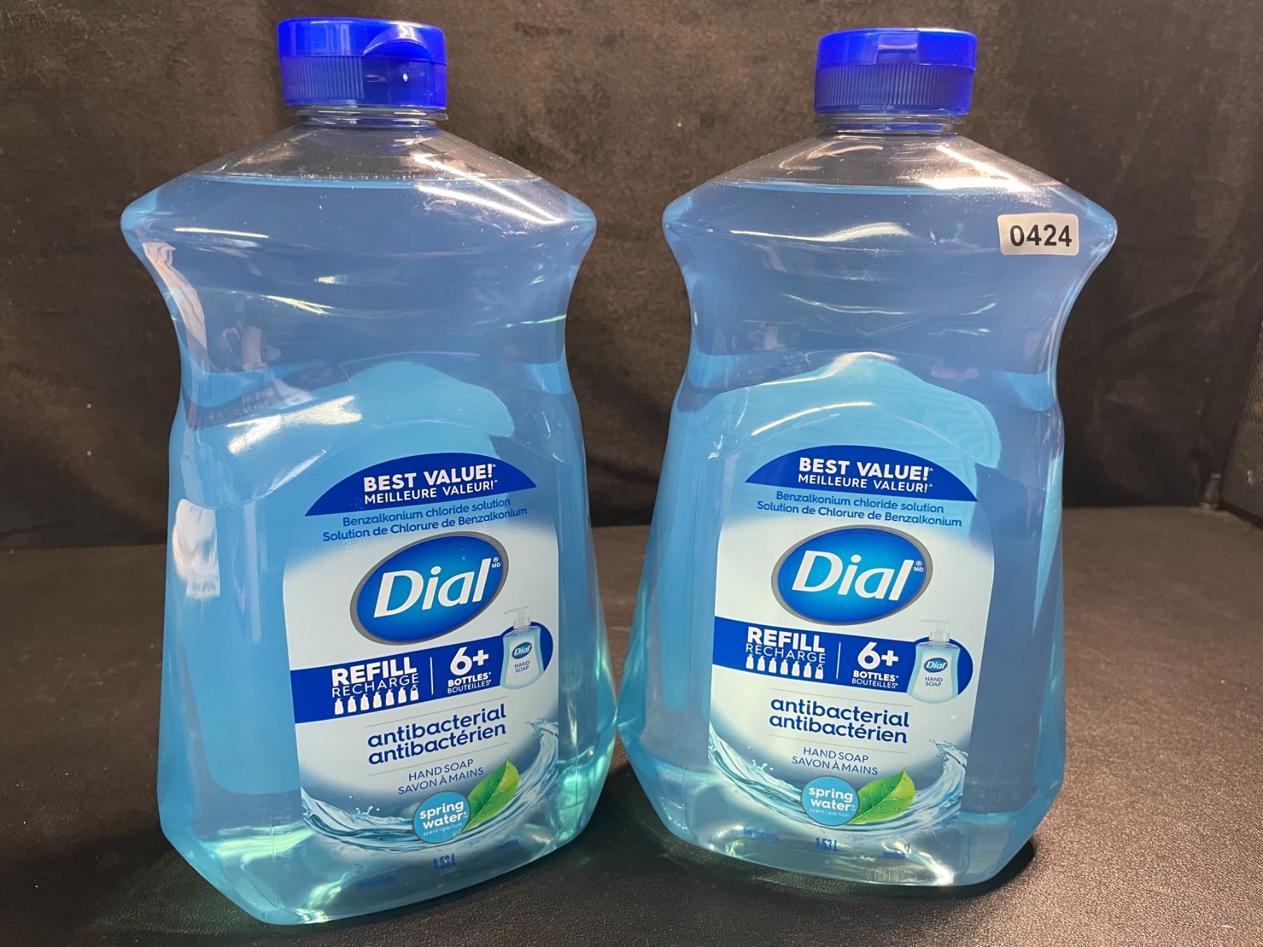 2 Large Bottles of Dial Antibacterial Hand Soap - Spring Water Scent - 1.53L Each - New