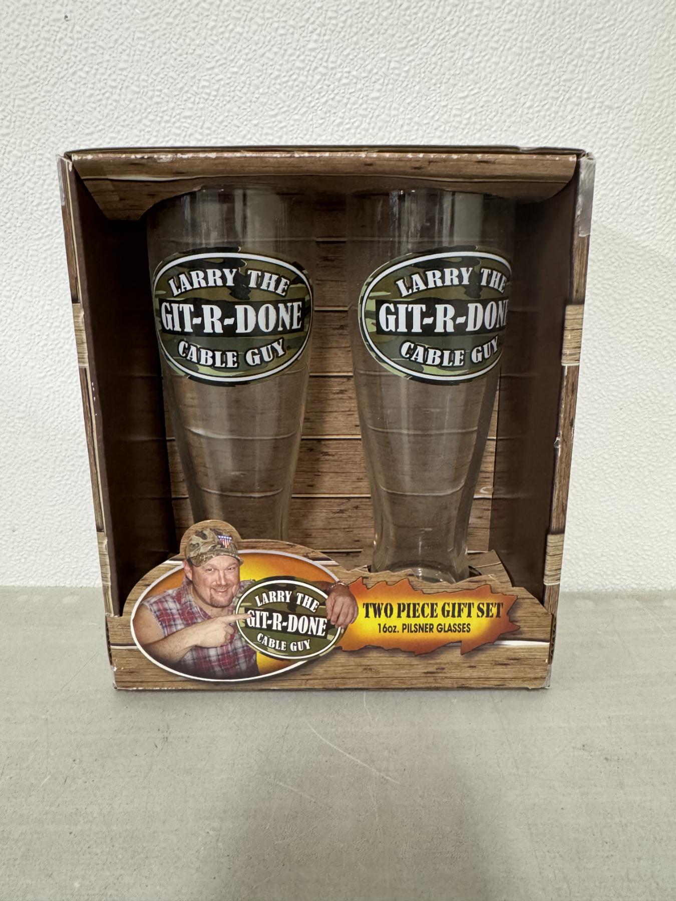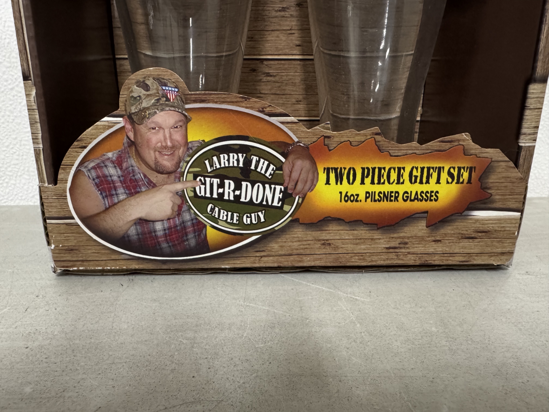 2 - Larry The Cable Guy Git-R-Done 16 Oz Pilsner Glasses - Never Opened
