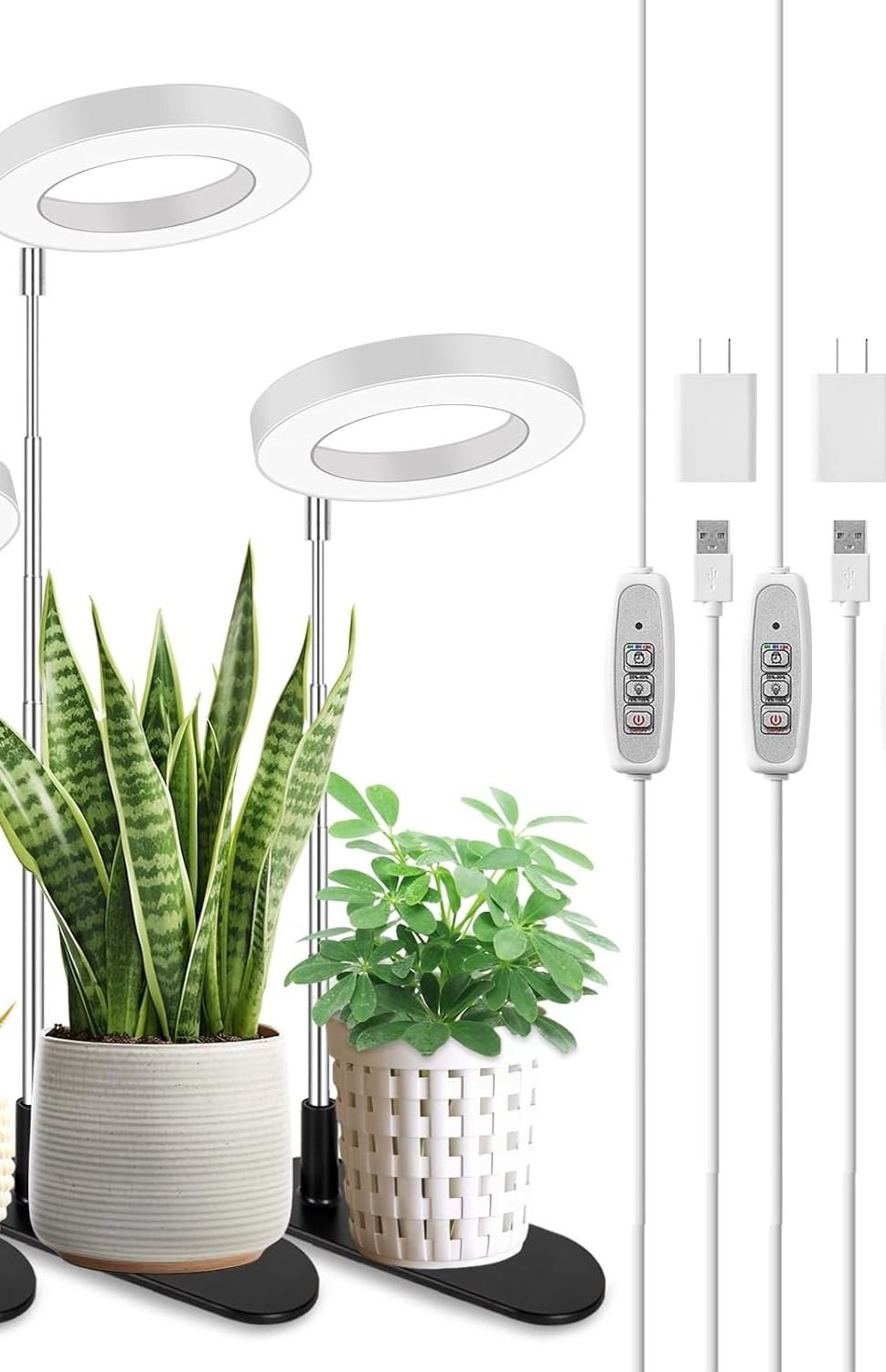 2 Lordem Full Spectrum LED Halo Plant Lights for Indoor Plants w/ Adjustable Height/Brightness - NEW