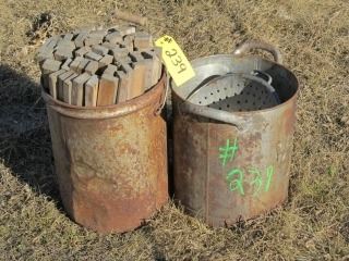 2 METAL PAILS; COLANDER; CEDAR SHIMS